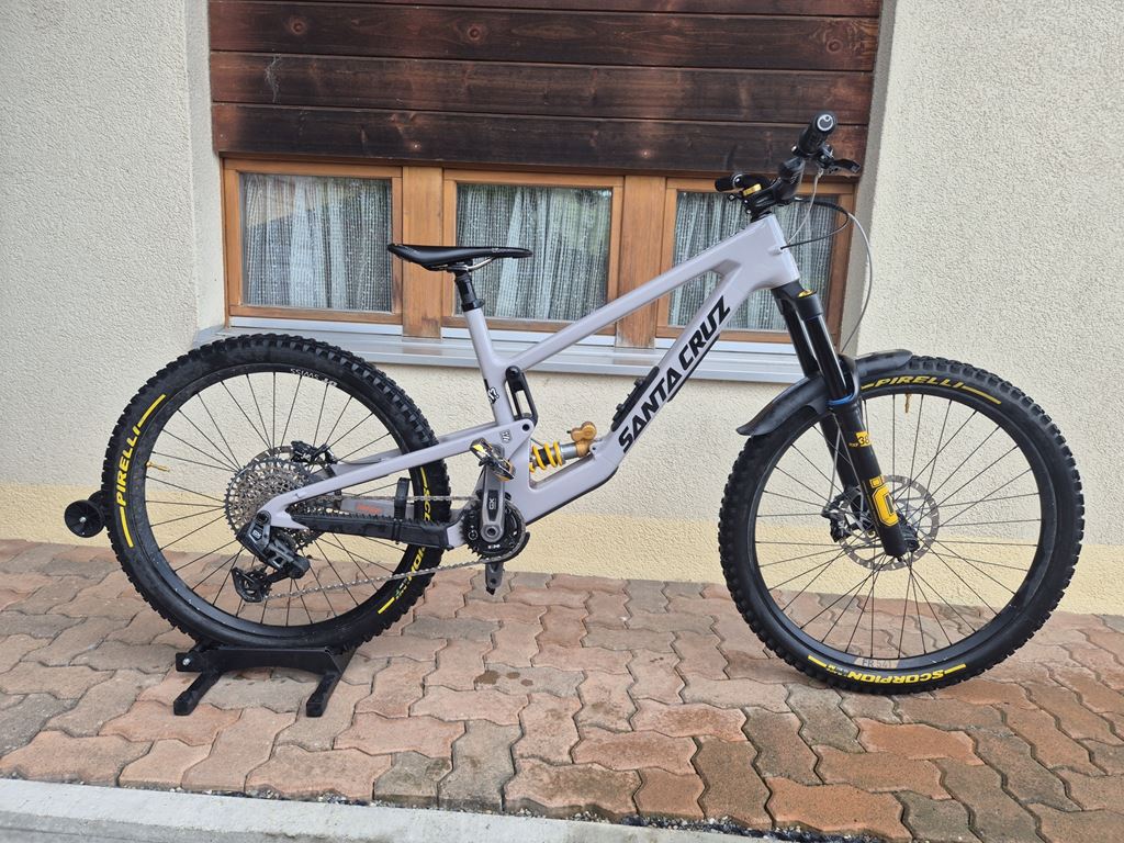 - Santa Cruz Nomad V6 XL Bike wurde anfangs 2025 aufgebaut und eine Saison gefahren. Parts: -Gabel Öhlins RXF38m.2 170mm -Dämpfer Öhlins ttx22m.2 230x65 -Bremsen Hope Tech 4 V4 -Antrieb Sram Transmission GX mit Ochain R -Dropper One Up V3 210mm -Laufräder DT Swiss 350 mit Fr541 -Kompletter Rahmen mit Ridewrap abgeklebt -Custom Sticker von Slickgraphics Sehr gerne kann das Bike besichtigt werden. Nach Absprache könnte das Bike auch mit nem Fox Factory Fahrwerk erworben werden (38er Gabel und X2 Dämpfer). Update 18.11.2025: -Brandneues Fronttriangle - Fahrwerk ab grossem Service