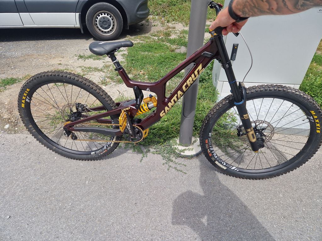 - Santa Cruz V10.7 CC 29 – Downhill Bike, Custom Build (Größe L) Zu verkaufen ist ein Santa Cruz V10.7 CC 29 (Carbon CC, Jahrgang 2021, Rahmengröße L). Neupreis über : CHF 10'000.–, Rechnung vorhanden (Mai 2022). 👉 Zustand: nahezu neuwertig, nur 5x gefahren. 👉 Hochwertiger Custom-Aufbau mit Top-Komponenten: Öhlins DH38 Air TTX18 Gabel Öhlins TTX22M Dämpfer DT Swiss FR 1950 Laufräder (29") Hope Tech 4 Bremsanlage in Rot Shimano Saint Kurbel Weitere edle Parts (Reverse, Burgtec, etc.) Lebenslange Garantie auf Rahmen und Lager (übertragbar laut Santa Cruz). Perfektes Race-Setup für Downhill – praktisch neuwertig. Preisvorstellung: CHF 6'450.– (VB)