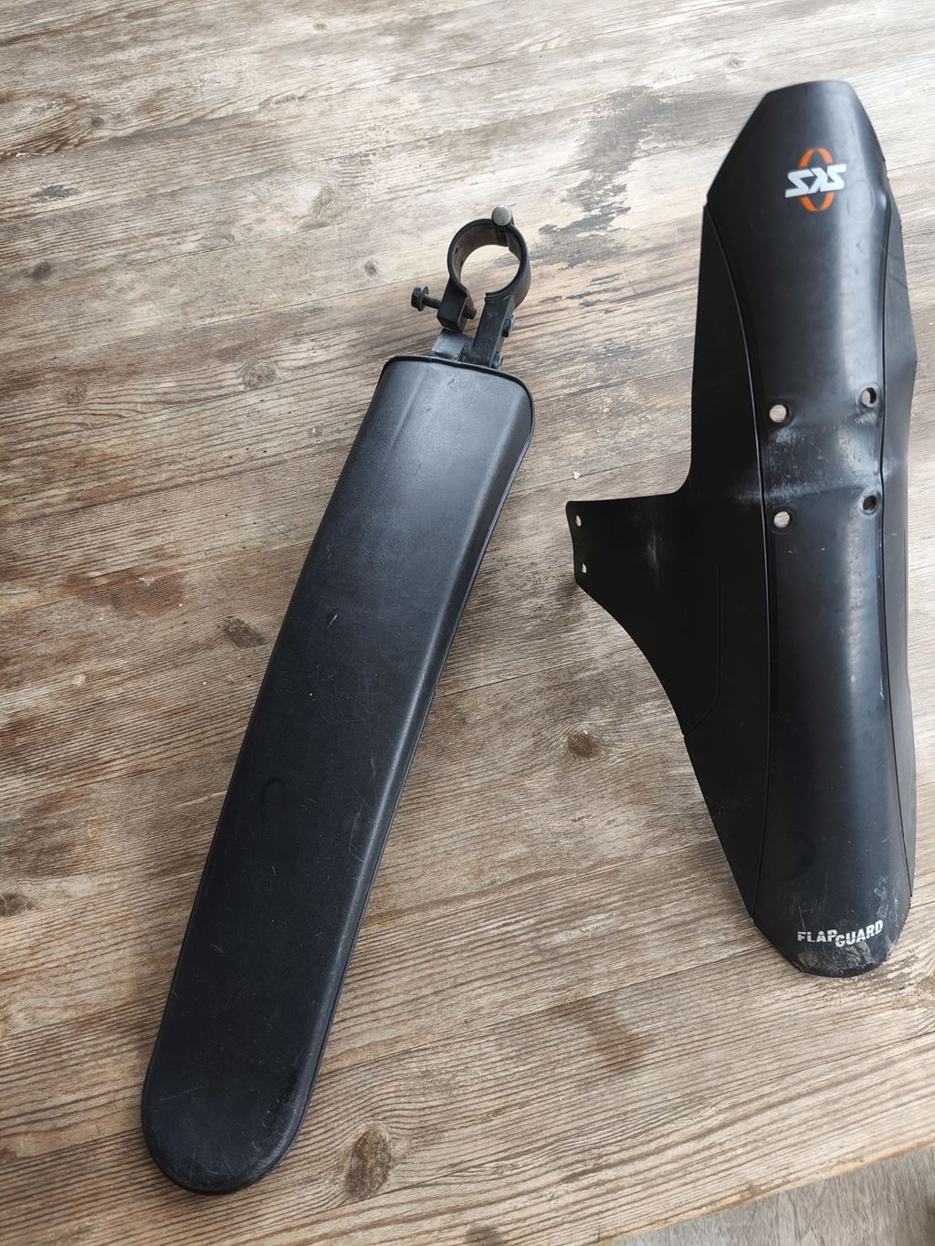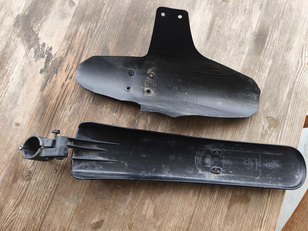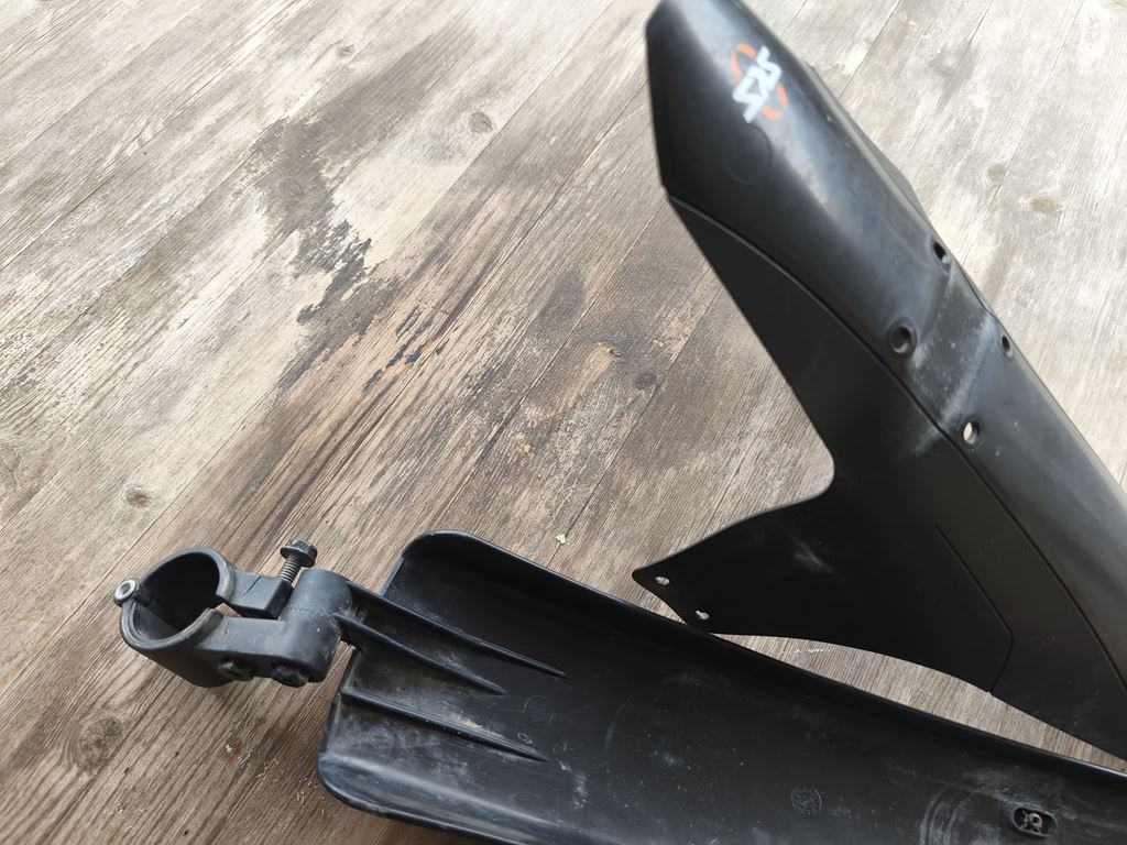 - Schutzblech/Mudshield. Gebraucht. Einfache Montage mit Schraube an der Sattelstütze und vorne mit Kabelbinder.