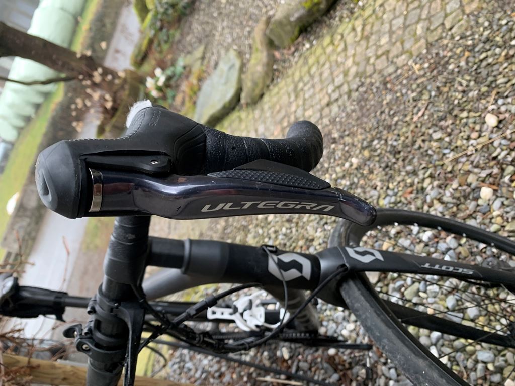 - sehr gepflegtes Carbon Rennrad Addict RC 15 von Scott Schaltwerk Shimano Ultegra komplett (elektronisch) Hydraulische Scheibenbremsen Syncros Radsatz Lenker, Vorbau, Sattelstütze und Sattel auch von Syncros Rahmen XL ideal für 178-186cm Körpergrösse ohne Pedale