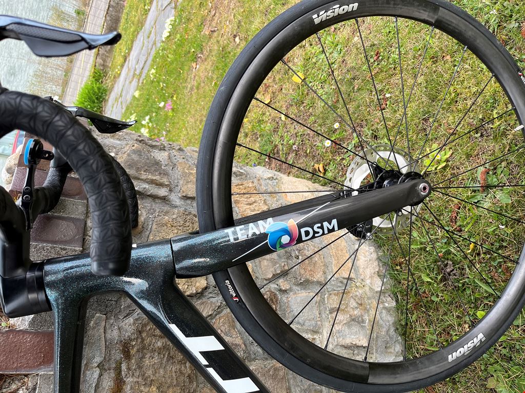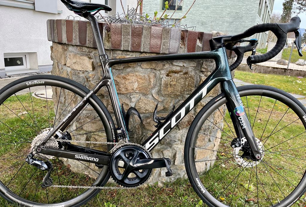 - Zum Verkauf steht ein gebrauchtes Scott Addict RC des UCI Teams DSM. Das Rad wurde von einem Teamfahrer als Trainingsrad genutzt, danach bin ich ich es noch etwas über ein Jahr gefahren. Seither wurde es kaum genutzt. Zustand ist top, Service ist gemacht, alle Verschleissteile (kompletter Antrieb, Bremsbeläge und -scheiben) wurden ersetzt. Rahmen-Set: Scott Addict RC Team Design, Grösse 56 Lenker-Vorbau: Syncros Creston iC SL, 110x420mm Sattelstütze: Syncros Duncan SL Aero Schalthebel: Shimano Dura Ace Di2 2x11 Umwerfer: Shimano Dura Ace Kurbel: Shimano Ultegra 2x11 (52/36), 172.5 mm (neu) Schaltwerk: Shimano Ultegra 2x11 Kette: Shimano Ultegra 11x (neu, entfettet und gewachst) Kassette: Shimano Ultegra 11x (11-32) Laufräder: Vision 35 mm Reifen: Vittoria Corsa N.EXT 26 (neu) mit Schlauch (neu) Sattel: Zitto 3d (nicht auf Foto) Pedale: Ohne Übergabe/Besichigung entweder bei Aarau oder in Zürich nähe HB möglich
