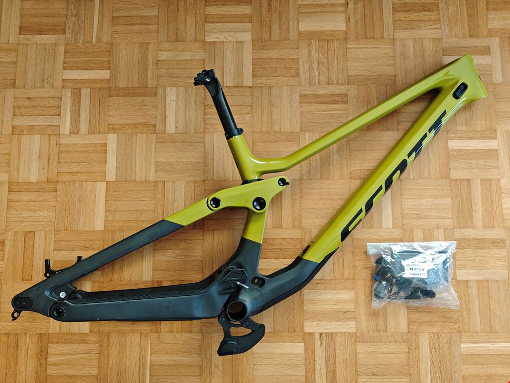 - Frameset Scott Gambler Tuned 2023 Sold with : - new bolt kit - new Bashguard - new Rubber parts - carbon seatpost Good overall condition, few scratches/chips visible on pictures. The bearing are new! Bolts tightened to specs with Loctite. Size XL 495/490mm Reach Compatible 29/27.5 BB height 346/342mm BB PF107x41mm 2 BB positions 2 progressivity positions 2 chainstay lengths Compatible with all Trunnion shocks 225x75mm Seatpost 31.6mm Chainguide & Bashguard for 32/34/36 teeth Visible in Fribourg Shipping possible (+30.- in CH, +45.- in border Europe)