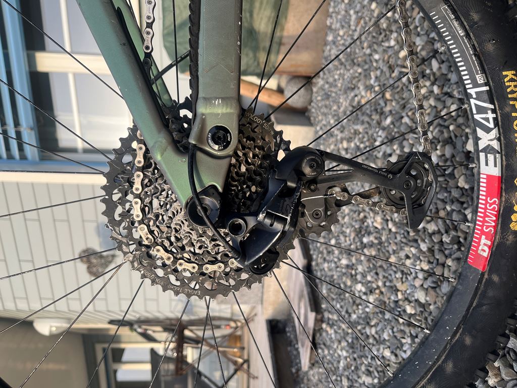 - Ich verkaufe mein Scott Ransom 910 aus dem Jahr 2020 aufgrund einer Neuanschaffung. Das Bike ist in gutem Zustand und wurde stets gepflegt, sowie regelmässig gewartet. Es weist normale Gebrauchsspuren auf, darunter ein paar kleine Schläge am Rahmen vom Fahren, technisch funktioniert jedoch alles einwandfrei und das Bike fährt sich nach wie vor sehr gut. Das Ransom ist ein starkes Enduro-Bike und eignet sich perfekt für anspruchsvolle Trails oder lange Tage in den Bergen. Bei Interesse, für weitere Infos oder eine Besichtigung kannst du dich gerne melden. Ausstattung Bremsen Shimano XT M8120 4 Kolben 203/F, 180/R Rahmen Carbon, Hinterbau Aluminium Schaltung SRAM GX / Eagle 12 Speed Gabel FOX 36 Float Performance 170mm Dämpfer FOX Float X2 Kurbelsatz SRAM GX Eagle DUB Boost 32T Steuersatz Syncros Pro Press Fit E2 / Tapered 1.5"-1 1/8" OD 50/62mm / ID 44/56mm Lenker Syncros Hixon 1.5 Rise / Alloy 20140D.B. 20mm rise / 8° / 800mm Syncros Pro lock-on grips Sattelmodell Syncros Comox 1.5 Titanium Rails Sattelstütze FOX Transfer Dropper Remote 150mm Laufrad Vorne Syncros Revelstoke 2.0 TR Hinten DT Swiss EX471 Reifen Continental Kryptotal