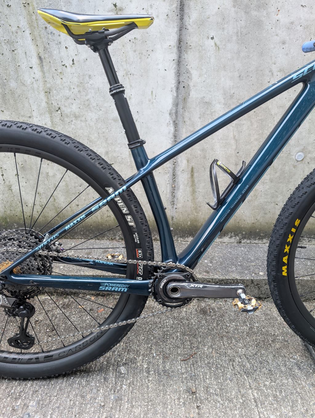 - Scott Scale RC 29" Worldcup | S | XTR | Special | Teamrahmen Verkaufe das Spezielles Scott Scale RC 29" | Kate Rahmen: Scott Scale Carbon HMX SL - Teamrahmen Federgabel: RockShox SID Ultimate - Weltcup Dämpfer Felgen: Carbon XC 30mm, Naben: DTSwiss 240 Lenker: Syncros Carbon 1.0 SL Vorbau: Syncros 1.5 Sattelstütze: YEP Components Podio (Schweizer Produkt) Powermeter: SIGEYI Bremsen: Shimano XTR 9100 Schaltung: Shimano XTR 9100 1x12 Tretkurbel: Shimano XTR Kette: XTR Kassette: Shimano XTR Da bike wurde von einem Kind gefahren. Beim Verkauf wird eine neue Kette Montiert und zwei neue Reifen Maxxis Aspen gehören auch dazu