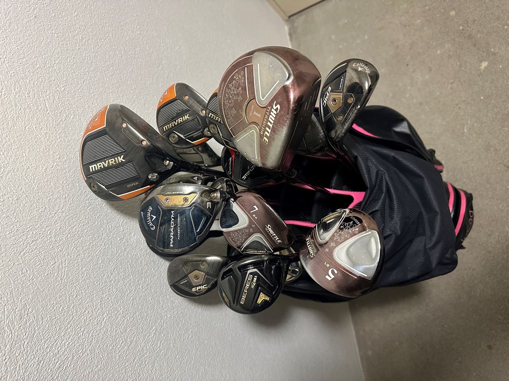 - I am offering for sale a complete and extensive set of golf equipment (18 clubs), including premium models and two travel covers. Golf Clubs (18 pieces) * Drivers and Fairway Woods: * Callaway Mavrik Max: Driver 10.5°. * Callaway Paradym Carbon: 3-Wood. * Callaway Epic Flash: Fairway Woods No. 4, 5, 6. * Callaway Mavrik Max: Fairway Woods No. 5, 7. * Shuttle Titanium i4000x Maruman: 1-Wood (HT 13.5°). * Shuttle Maraging i4000x Maruman: Fairway Woods No. 5 (21°), 7 (24°). * Hybrids and Utility Clubs: * Callaway Mavrik Max: Hybrids/Utility No. 4, 5, 6. * TaylorMade Rescue Stealth V Steel: Hybrid 5, 25°. * Beres Honma: Hybrid U22. * Onoff: Utility U4, 20°. * Wedge and Putter: * Majesty Royal Maruman: Approach Wedge (Aw). * Scotty Cameron Select Fastback Titleist: Putter (No. 10). Accessories and Covers * Bags and Travel Covers: * JuCad: Golf Bag (Cart Bag). * Callaway: 2x travel cover/bag (Travel Cover) for transport. * Headcovers (Club Head Covers): * 16 branded headcovers for drivers, woods, and hybrids (including Scotty Cameron, Honma, Epic, Dixxio). * Measuring Devices and Balls: * Rangefinder: Nikon Coolshot 40iGII. * Rangefinder Bag: Bushnell Golf. * Golf Balls: 6x TaylorMade Tour Response Stripe. Condition: Very well maintained and fully functional! * Location: Adliswil, Zurich, Switzerland * Negotiation: I am willing to negotiate the price slightly for a fast and straightforward deal with cash payment.