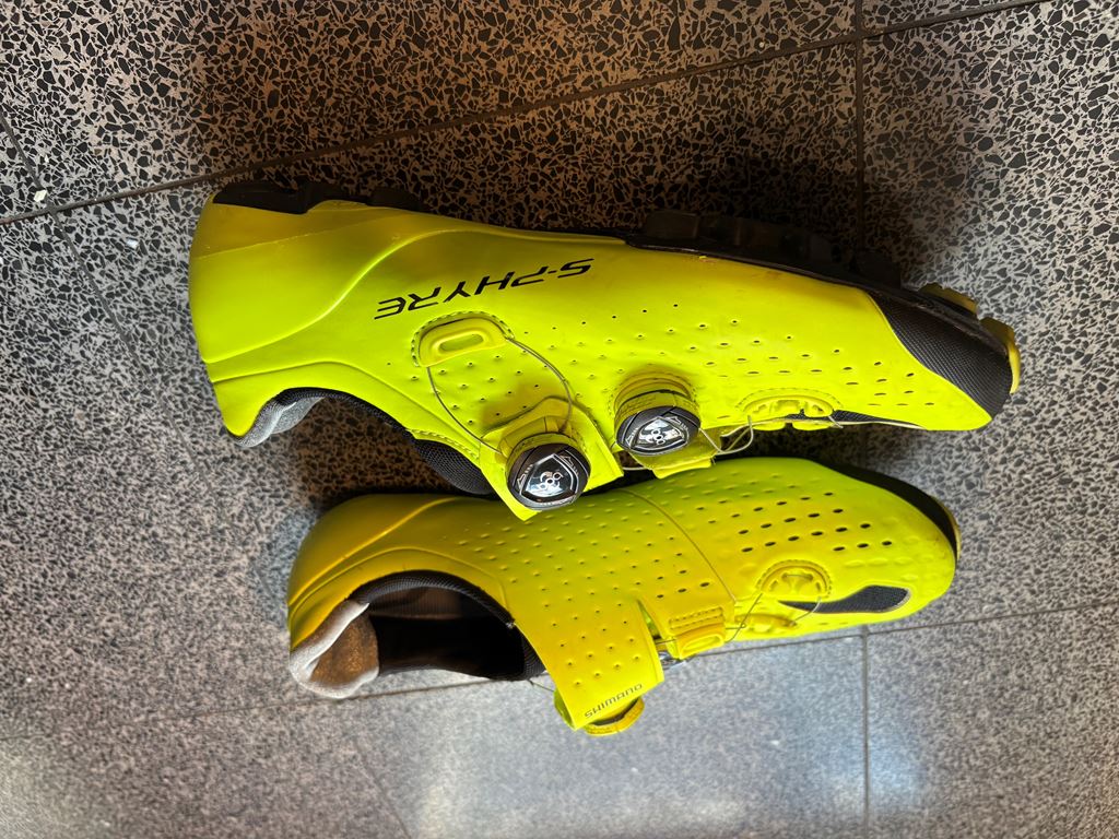 - Verkaufe meine XC Schuhe Shimano S-Phyre XC 9 in Grösse 43 / US 8.9 / 27.2cm, Farbe neongelb, full Carbon Sohle mit Michelin Gummisohle. Absolutes Top-Modell von Shimano mit 780g/Paar superleicht und mit den zwei Boa-Verschlüssen bequem und exakt an den Fuss anzupassen. Zustand fast neu, da leider etwas zu klein. Maximal 5 Ausfahrten getragen.