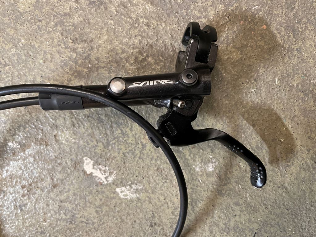 - Verkaufe eine gebrauchte Shimano Saint Vorderradbremse. Der Bremshebel ölt an der goldenen Endkappe! Da ist eine Dichtung undicht oder so. Zum Reparieren oder für Ersatzteile. Ansonsten guter Zustand. Leitungslänge 75cm. Ohne Bremsbeläge.