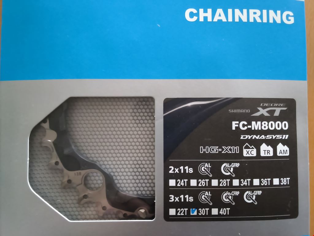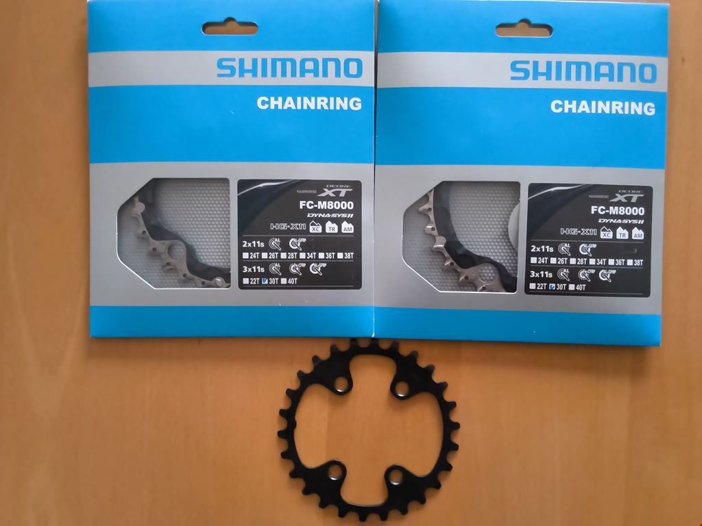 - 2 Neue Shimano XT, FC- M8000, 30 Zähne Kettenblätter, 96mm Durchmesser, je Fr.18.- 1 Neues Shimano, 26 Zähne Kettenblatt, neuer kleiner Lochkreis, Fr. 15.-