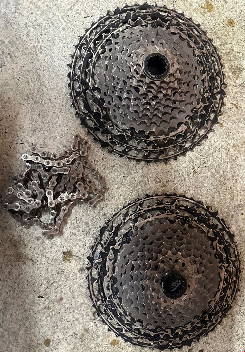 - Schaltwerk und Trigger in fast neuem Zustand Zusätzlich zwei XTR Kassette + eine Kette (diese sind aber stark abgenutzt)