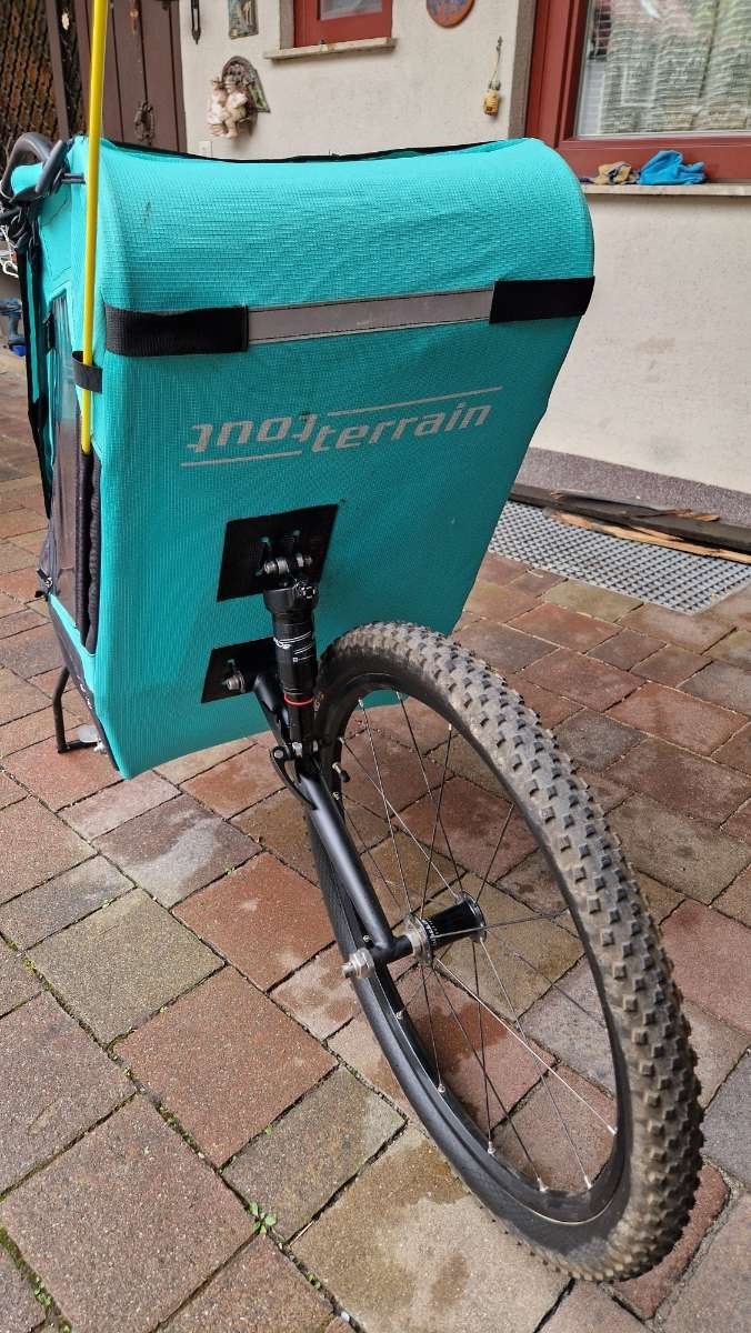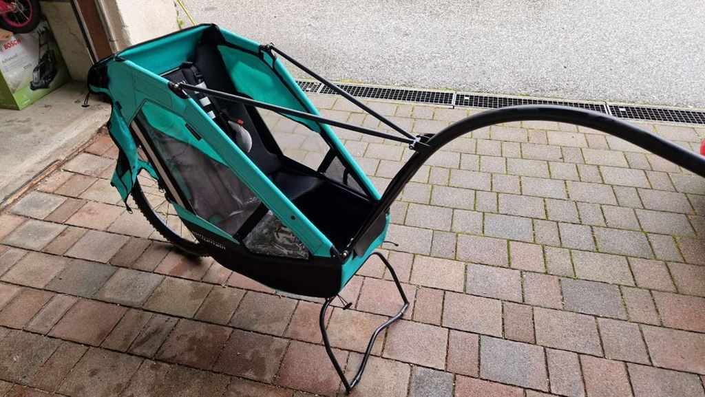 - Wir verkaufen unseren liebgewonnenen Tout Terrain Singletrailer II Sport, da unser Nachwuchs mittlerweile selbst radelt. Ein absolut hochwertiger, gefederter Fahrrad-Kinderanhänger für sportliche Eltern, die gerne auch abseits der Straße unterwegs sind. Wichtig: Der Anhänger wurde nie in Bikeparks oder auf extremen Singletrails genutzt – ausschließlich auf Forst- und Radwegen. Highlights & Details: Einsatzbereich: Mountainbike / Offroad Tragfähigkeit: 25 kg Sitzplätze: 1 Eigengewicht: ca. 9,5 kg Federung: einstellbar von 180 mm bis 220 mm Komfortabler, atmungsaktiver Sitz mit Fünfpunkt-Sicherheitsgurt und FidLock-Verschlussschnalle Weiche, einstellbare Federung – sorgt für hohen Fahrkomfort Deichsel mit kugelgelagertem Wellengelenk Neigetechnik: Anhänger neigt sich in Kurven mit – mehr Stabilität, weniger Fliehkräfte Sehr gute Luftzirkulation durch atmungsaktiven Sitzbezug Ein idealer Begleiter für gemeinsame Abenteuer in der Natur – sicher, leicht und komfortabel.