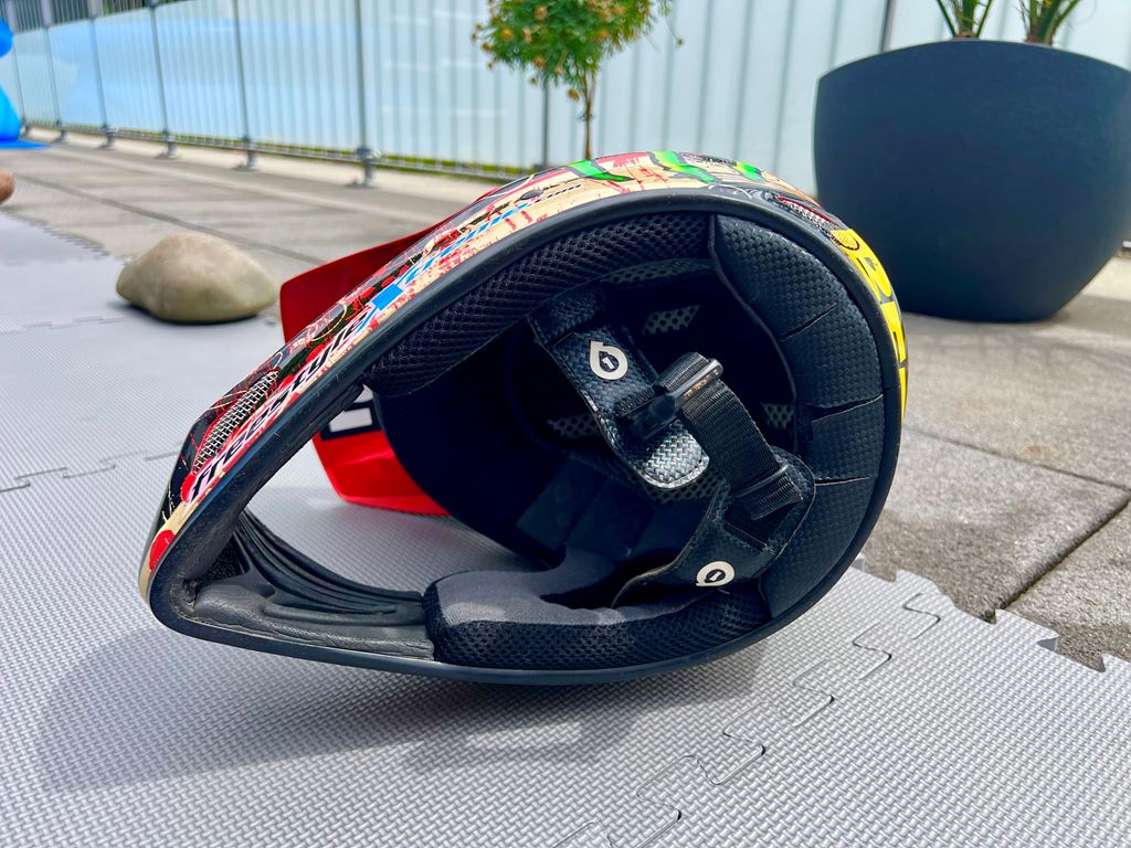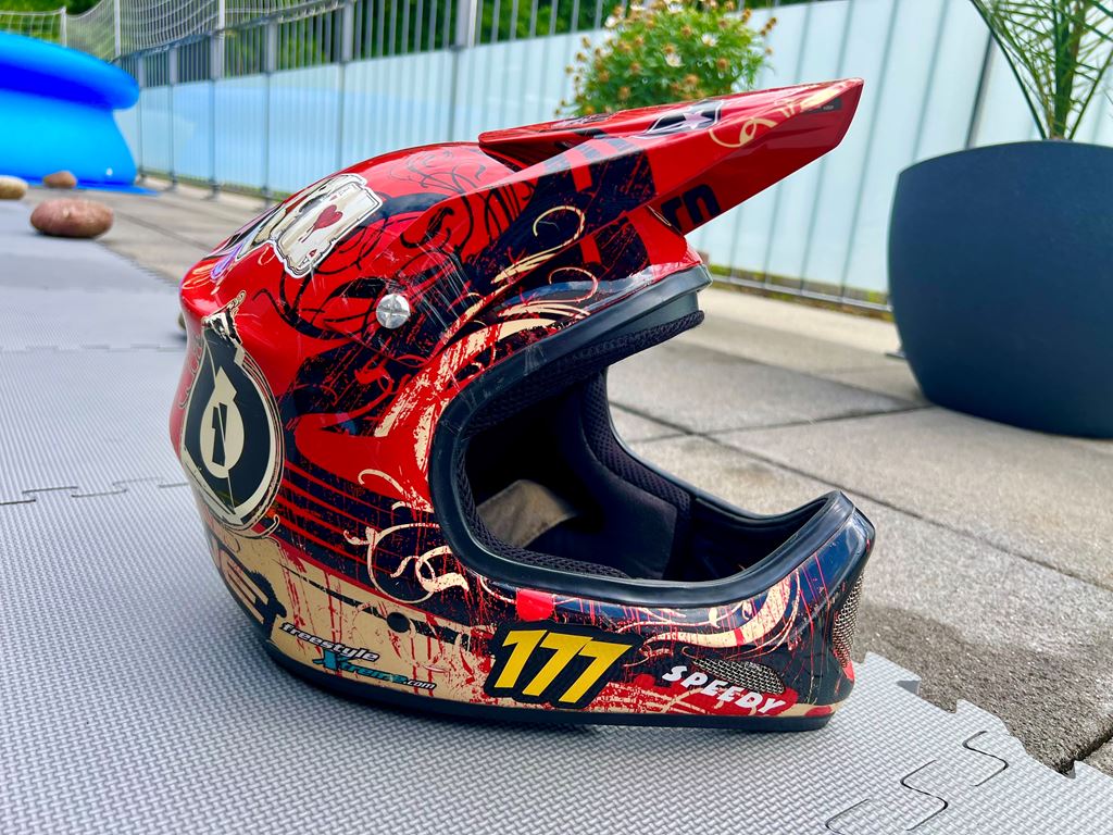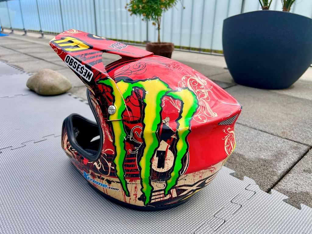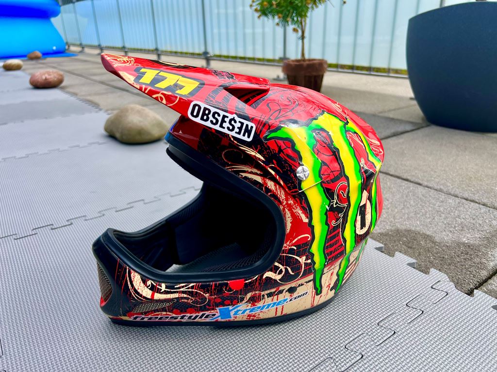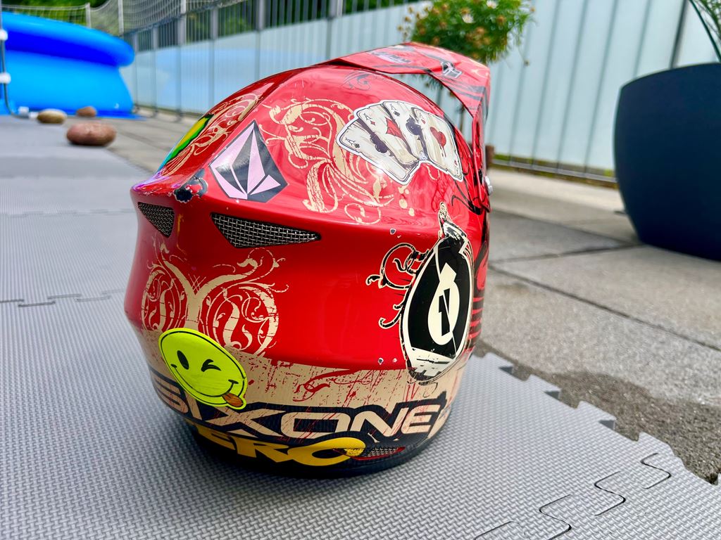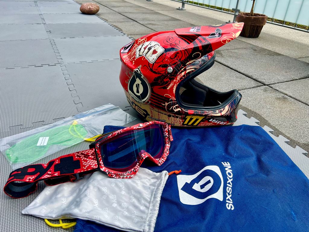 - Last 10 years stored in the bag, not used. Condition good, except bottom material has few aging cracks. Still plenty of life in this helmet. Size: M/L Stickers can be easily removed. inkl. SPY goggles with 2x lenses (clear and blue)