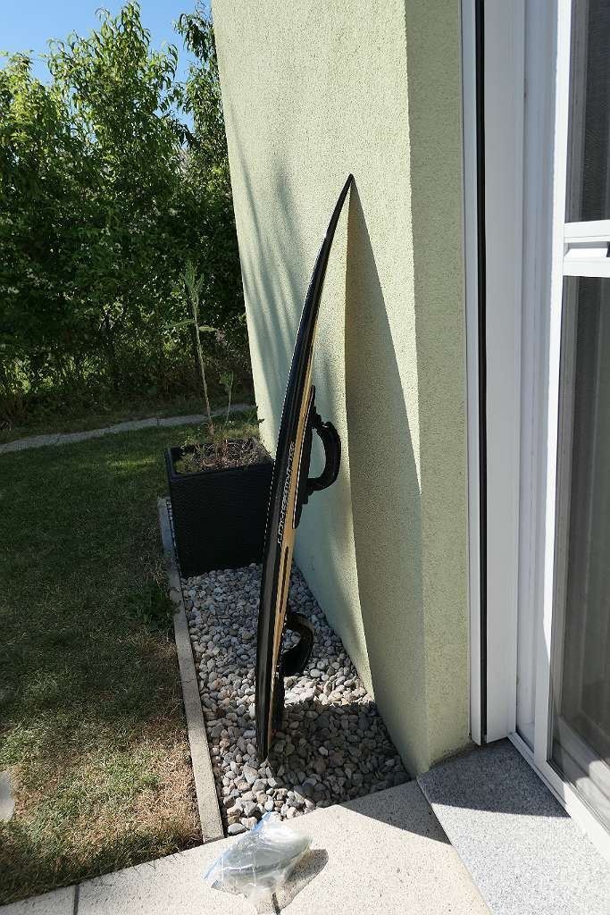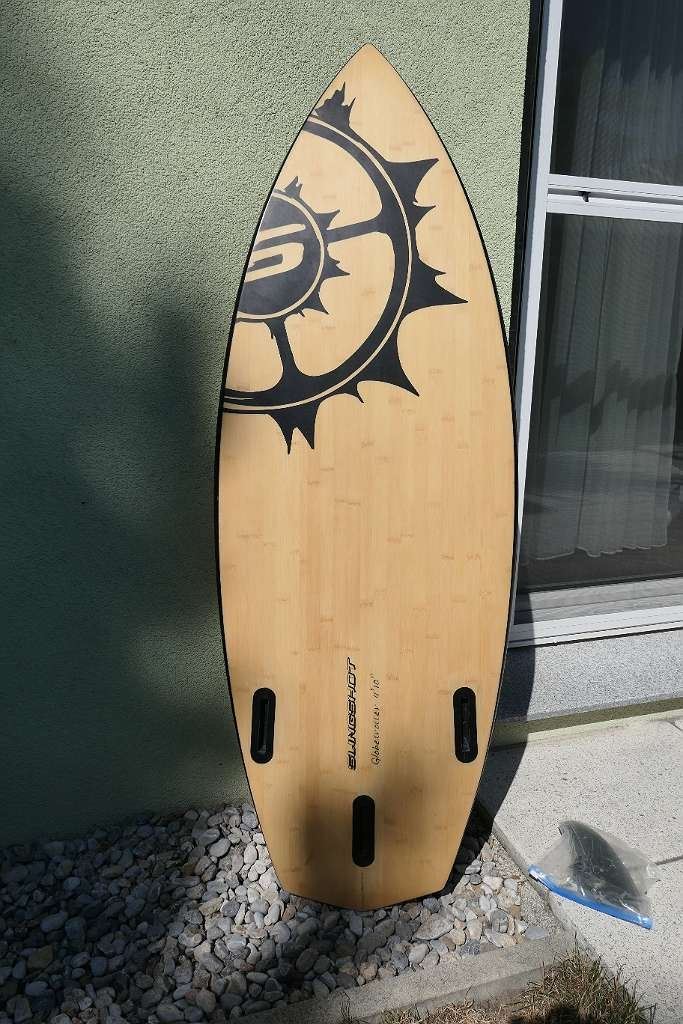 - Slingshot Globetrotter 4.10 Wurde nur wenige Stunden im Urlaub gefahren Minimale Gebrauchsspuren, mängelfreier Zustand, keine Beschädigungen Bambus Sandwich, sehr robust Slingshot Track System für die Schlaufen ( = schnell demontierbar, stufenlos verstellbar) Durchsichtige Gripdeck Streifen zum strapless fahren und (wake) surfen sind angebracht = keine Wachs sauerei beim Transport :-) Abnehmbares Standpad zum strapped fahren, wird mit Slider Track Nut und Schlaufe mitgeschraubt und kann in wenigen sekunden gemeinsam mit der Schlaufe montiert / demontiert werden Abnehmbare hintere Fusschlaufe mit Slingshot TRacknut System, kann in wenigen sekunden montiert oder demontiert werdem Inkl. 3 stück original Slinkshot G10 Finnen, Thruster Setup