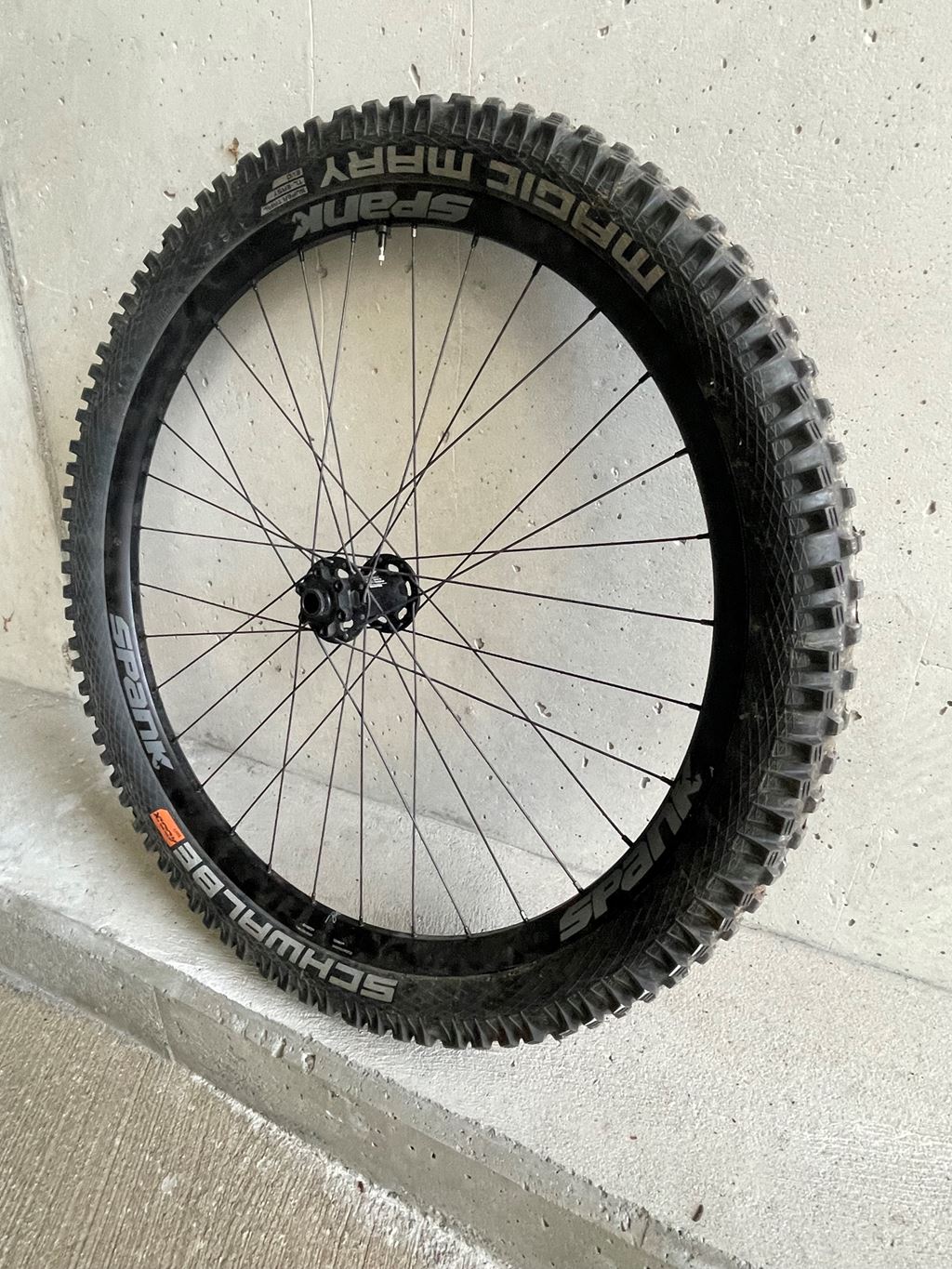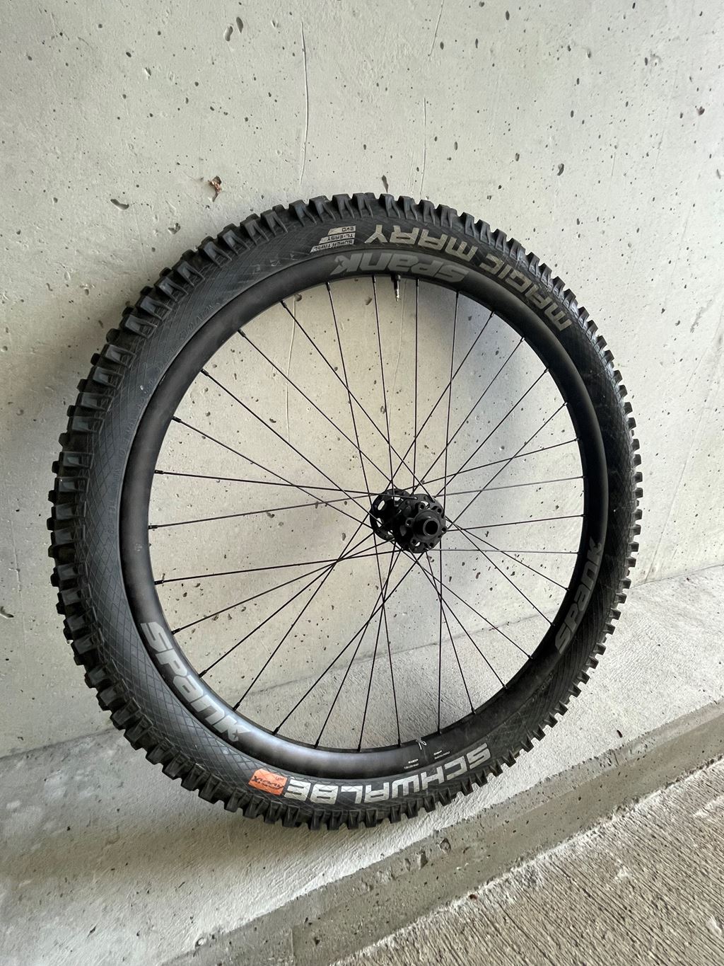 - Meine alten Spank Race 33 Hinterrad in der Grösse 27.5 mit einem Schwalbe Magic Mary in einem sehr gutem Zustand. Das Rad ist auch auf Tubeless und haltet Luft ohne Problemen. Es ist Kompatibel mit 15 X 110 Thru axel und hat das 6 Loch Bremsmontage. Das Rad ist perfekt gerade in sehr gutem Zustand.