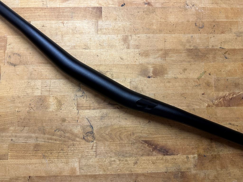 - Lenker ab Neubike, ungefahren. Specialized Alloy, 20mm rise, 35mm, 760mm wide (ungekürzt). Mit subtilem Specialized Logo in schwarz und passenden Markierungen als Ausrichthilfen.
