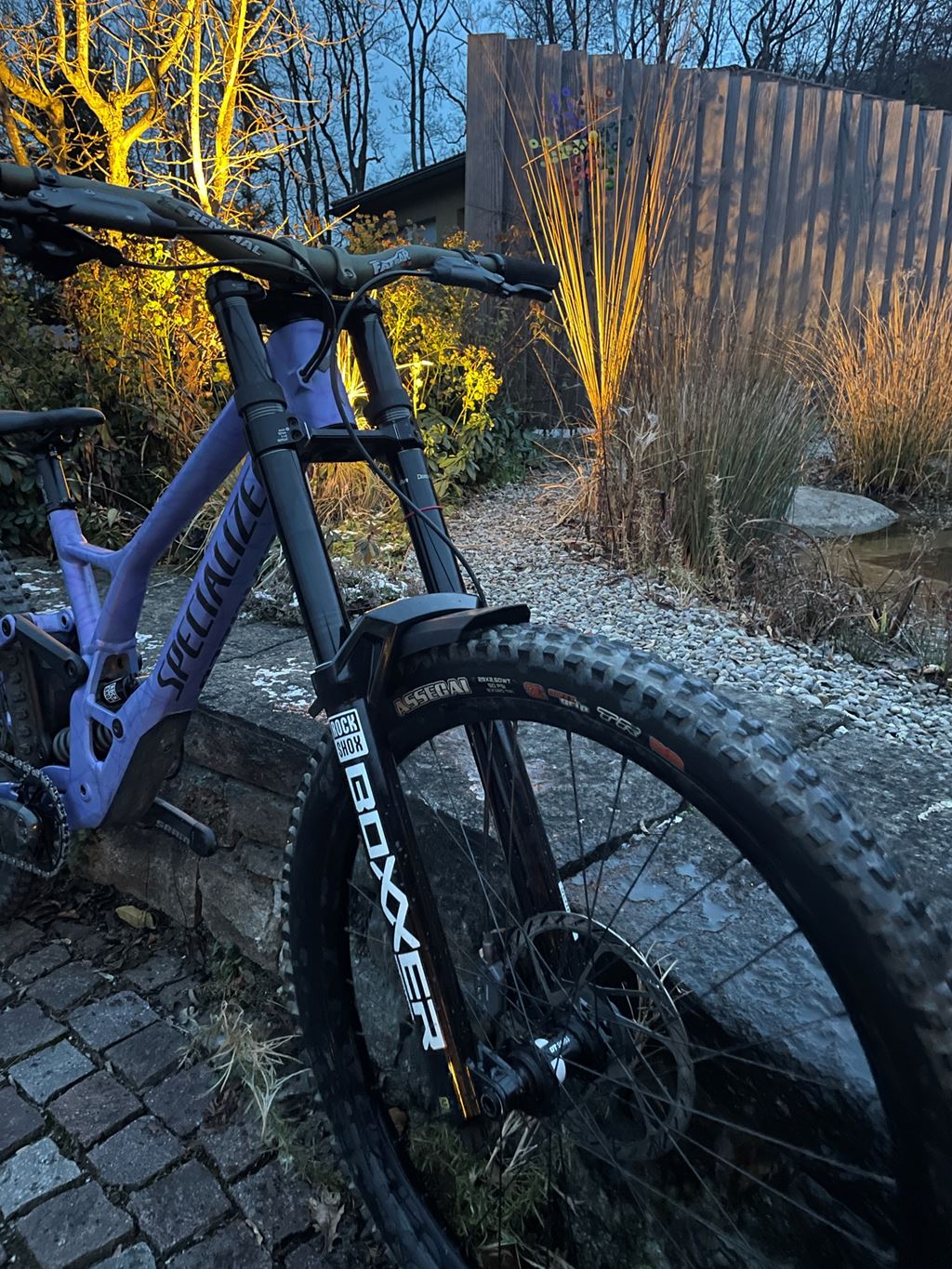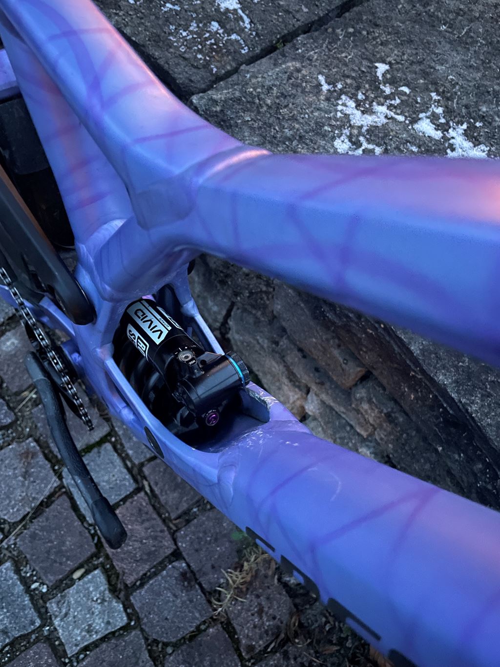 - Das Bike ist etwa 1.5 Jahre alt. Es ist frisch ab Service (inkl. Gabelservice). Kassette, Kette, Lenkkopflager, Schaltauge, Felge hinten, Speichen hinten, Bremsbeläge sind alles neu. Gabel und Dämpfer wurden im April 2025 auf Rock Shox umgebaut. Der Rahmen wurde aufgrund des Dämpfers etwas abgeschliffen (wurde von einem Fahrradmechaniker durchgeführt). Züsätzlich wurden noch eine Sram Maven BRZ angebracht. Bis auf den Lack in Top Zustand.