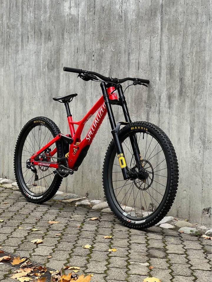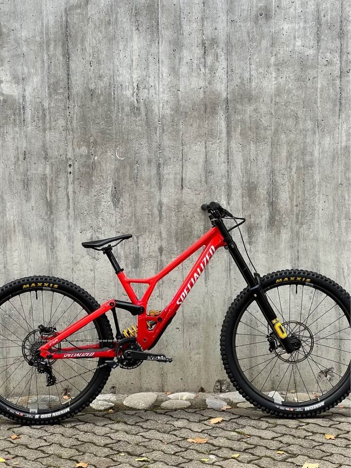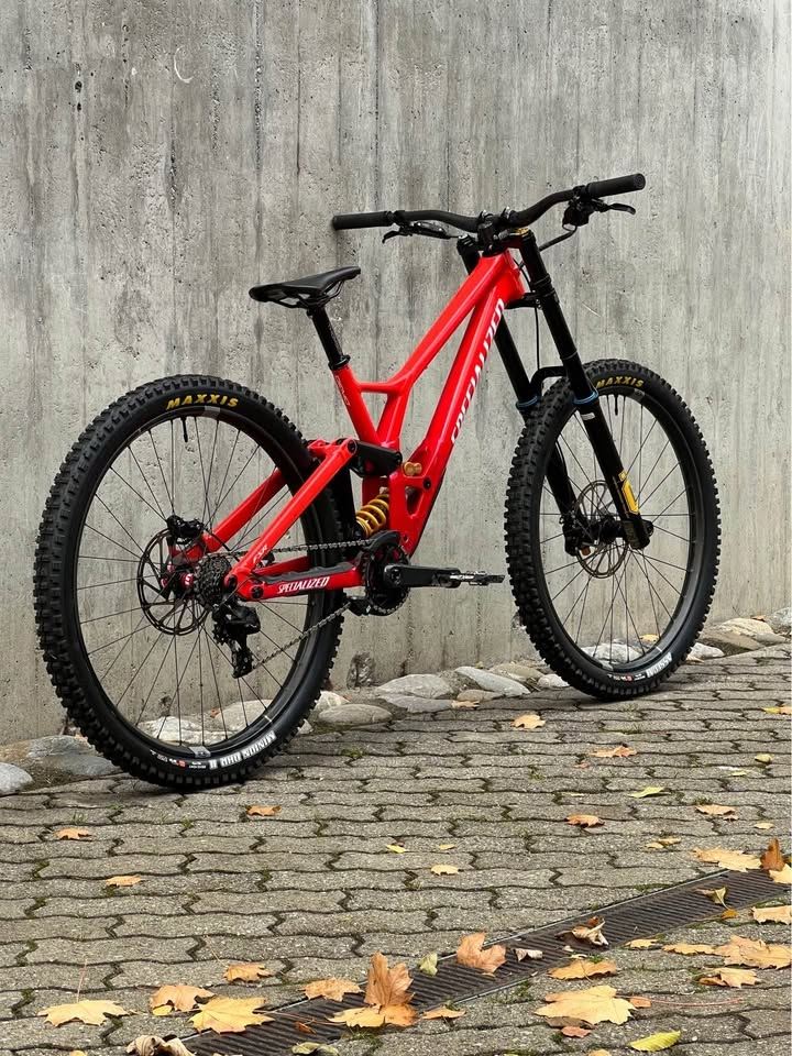 - For sale CUSTOM SPECIALIZED DEMO very beautiful and rare color 🟥 size S4 ( LARGE ) Wheel size 29/29 ( MX POSSIBLE ) Fork - Öhlins DH38 m.1 serviced one month ago Shock - Öhlins TTX22 m.2 with 457 lbs spring Stem - Chromag Handlebar - Chromag NEW grips Brakes - SRAM CODE RSC Rotors 220F/200R centreline NEW brake pads Wheels CRANK BROTHERS synthesis DH 29/29 NEW tires MAXXIS 3C maxxgrip DH assegay front / minnion DHR 2 rear Cranks - SRAM X01 DH carbon Cassette - SRAM X01 DH 7 SP Chain - Sram 11sp Chainguide - E13 LG1 carbon Seat - Specialized DH Seatpost - Thomson elite Price 4.999 CHF Frame is registered and under the warranty Everything is in good shape , ready for ride . Contact me if you have any questions