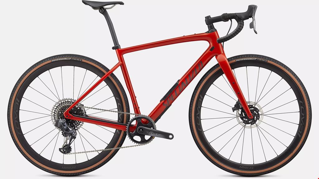 - Specialized Diverge Pro 2021 Gravelbike Rahmengrösse 52cm, geeignet für eine Körpergrösse von 163-170cm Farbe: rot FRAME: Specialized Diverge FACT 9r carbon, SWAT™ Door integration, Future Shock suspension, threaded BB, internal routing, 12x142mm thru-axle, flat-mount disc SHIFT LEVERS: SRAM Force eTap AXS Hydraulic CASSETTE: SRAM XG-1295 Eagle, 12-speed, 10-50t CRANKSET: SRAM Force 1, 38T REAR DERAILLEUR: SRAM X01 Eagle AXS BOTTOM BRACKET: SRAM DUB BSA 68 CHAIN: SRAM X01 Eagle, 12-speed CHAINRING: 38T HANDLEBARS: Easton EC70 AX Carbon, 16-degree flare SADDLE: Phenom 143mm STEM: Future Stem, Pro 90mm SEATPOST: Roval Terra Carbon Seat Post, 20mm Offset, Durchmesser: 27.2mm FRONT TIRE: Pathfinder Pro, 2Bliss Ready, 700x38mm, Tubeless REAR TIRE: Pathfinder Pro, 2Bliss Ready, 700x38mm, Tubeless FRONT WHEEL: Roval Terra CL, 25mm inner width carbon rim, 32mm depth, DT for Roval 350 hub, 24h, DT Swiss Comp Race spokes, Reserve Fillmore Tubelessventile REAR WHEEL: Roval Terra CL, 25mm inner width carbon rim, 32mm depth, DT for Roval 350 hub, 24h, DT Swiss Comp Race spokes, Reserve Fillmore Tubelessventile FORK: Future Shock 2.0 w/ Damper, Smooth Boot, FACT carbon, 12x100 mm thru-axle, flat-mount Bremsen: Trickstuff C21 Bremszange mit SRAM Force Brems/Schalthebeln, die Original Bremse SRAM Force gibt es auch dazu inkl Ersatzbatterie & Ladegrät eTap SRAM, Bidonhalter mit Multitool, auf Wunsch mit Pedal Shimano PD-ES600 (SPD-kompatibel)