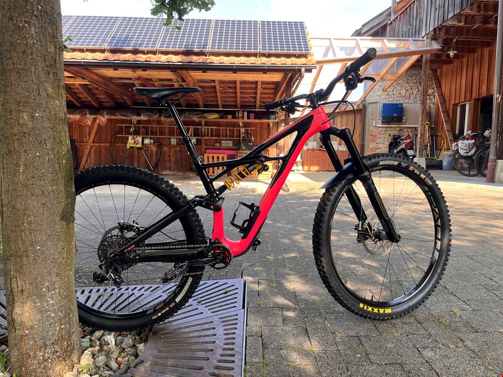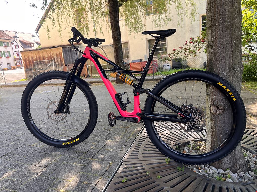 - Enduro Elite 29/6Fattie 2018 - 2022 Satin Gloss Acid Pink/Carbon, Grösse M FRAMESET SATTELSTÜTZKLEMME Alloy, 38.6mm RAHMEN FACT 9m, X-Wing layout, carbon front chassis, M5 alloy rear end, All Mountain Geometry, SWAT™ Door integration, threaded BB, fully enclosed internal cable routing, ManFu link, oversized pivot bearings, alloy link and adjustable shock extension, 12x148mm dropouts, replaceable derailleur hanger, 160mm of travel DRIVETRAIN SCHALTWERK SRAM GX, long cage, 11-speed KURBELGARNITUR Race Face Aeffect alloy crank, 24mm spindle, 28t direct mount ring, 6000 series alloy SCHALTHEBEL SRAM GX, trigger, 11-speed KETTE KMC X11, 11-speed w/ Missing Link™ SCHALTWERK SRAM GX, long cage, 11-speed KETTENBLÄTTER Steel, 28T KASSETTE SRAM GX 1150, 11-speed, 10-42t INNENLAGER Race Face PF30 (neu 08.2021) SUSPENSION DÄMPFER Öhlins TTX 22 SBC1735 (Enduro), Spring 18075-06 (350 lbs/in) 03.2020 GABEL Öhlins RXF 36, 29/6Fattie, Single-Tube design, air spring w/ adjustable 3rd chamber, adjustable low-speed compression, adjustable rebound, 15x110mm thru-axle, 51mm offset, 160mm of travel 95 psi von oben 175 psi von unten Tuning 08.2020 Service 08.2021 WHEELS FELGEN Roval Traverse 29, hookless alloy, 29mm inner width, 24/28h, tubeless ready HINTERRADNABE DT Swiss 360, 3 Pawl Design, SRAM XD driver body, 12mm thru-axle, 148mm spacing, 28h VORDERREIFEN Maxxis - Assegai Inhalt: 1, Farbe: schwarz, Typ: Faltreifen, Grösse: 29 x 2,50, Geeignet für: Vorderrad + Hinterrad, Reifenbreite: 2,50 WT, ETRTO: 63-622, Ausführung: Geeignet für TL Ready, Compound: 3C MaxxGrip, Luftdruck: 2,5-3,4Bar, Skin: Double Down, Karkasse: 2 x 120tpi, E-Bike zugelassen: Keine Angaben, Technik: Standard HINTERREIFEN Maxxis Minion DHR2 29 "x 2,4" 3C EXO + MaxxTerra VORDERRADNABE Specialized, sealed cartridge bearings, 15x110mm spacing, 24h SPEICHEN DT Swiss Revolution SCHLÄUCHE Tubles, Huck Norris COCKPIT LENKER Specialized DH, 7050 alloy, 8-degree backsweep, 6-degree upsweep, 27mm rise, 800mm, 31.8mm clamp SATTELSTÜTZE Command Post IRcc, 12-position micro-height adjustable, alien head design, bottom mount cable routing, remote adjust SRL lever, 30.9mm, S: 100mm, M/L/XL: 125mm of travel 60psi LENKERGRIFFE Sqlab 70X SATTEL Body Geometry Henge Comp, hollow Cr-Mo rails, 143mm VORBAU Specialized Trail, 3D forged alloy, 4-bolt, 6-degree rise Pedale Raceface Aeffect, Black, MID BRAKES HINTERRADBREMSE Shimano Deore XT, BL-M8000-R 1700mm Swissstop Bremsscheibe Catalyst 203 VORDERRADBREMSE Shimano Deore XT, BL-M8000-L 1000mm) Swissstop Bremsscheibe Catalyst 203