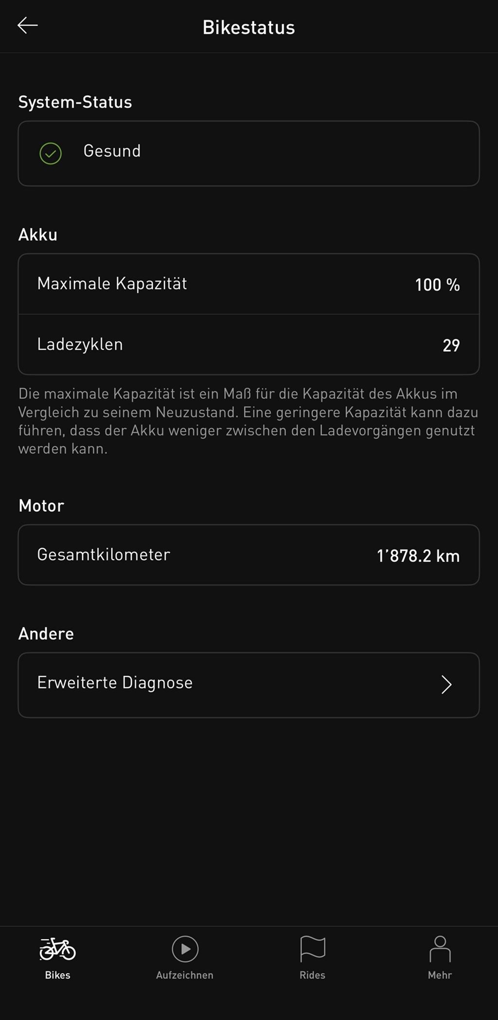 - Kapazität der Batterie ist bei 100% Total knapp 1900km gefahren Letzter Service 11.2024 Neuer Dämpfer Fox Float X2 Factory im 2025 (siehe letztes Foto) Rahmen total foliert