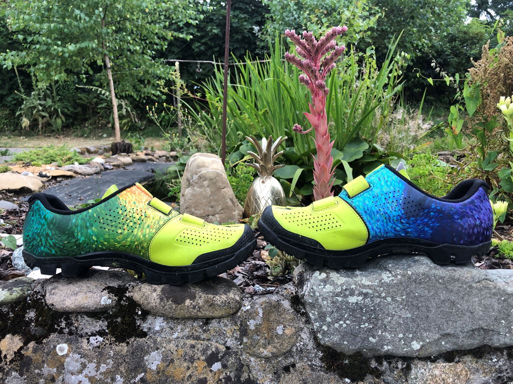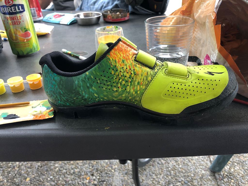- MTB Schuhe mit SPD Platten. Wenig getragen, weil zu klein (Speci Schuhe fallen kleiner aus). Bemalt mit Acryl Farbe