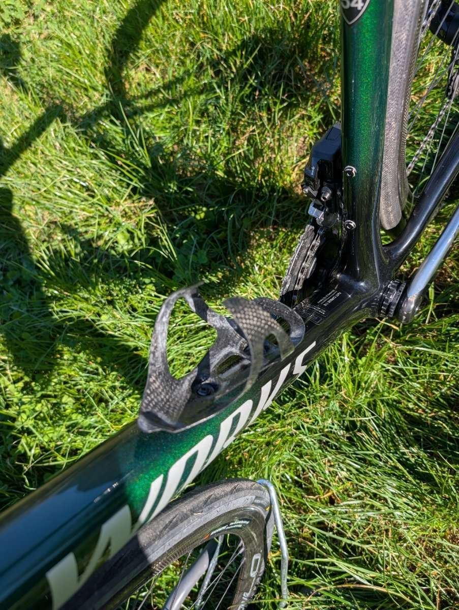 - I'm offering my wonderful and beautiful Specialized S-Works SL7 Roubaix for sale. The frame is scratch-free and has been meticulously cared for. The brake levers, derailleur, and crankset have minor scratches. - Color (Gloss Green Tint/Spectraflair/Satin Flake Silver) - Frame size 54 (EU) - Groupset/Brakes/Derailleur: SRAM Red AXS - Brake rotors: SRAM CLX-R 160mm - Rims: Campagnolo Bora One 35, scratch-free - Tires: S-Works rear and Ykstion Pro UST 2 front (new) - Headset and bottom bracket by CeramicSpeed - Handlebars and stem: S-Works - Carbon bottle cage - Saddle: Prologo Dimension 143 The Specialized Future Shock has been removed and replaced with a standard (non-suspension) headset. Future Shock and the associated stem are included, along with the charger for the Sram Red drivetrain.