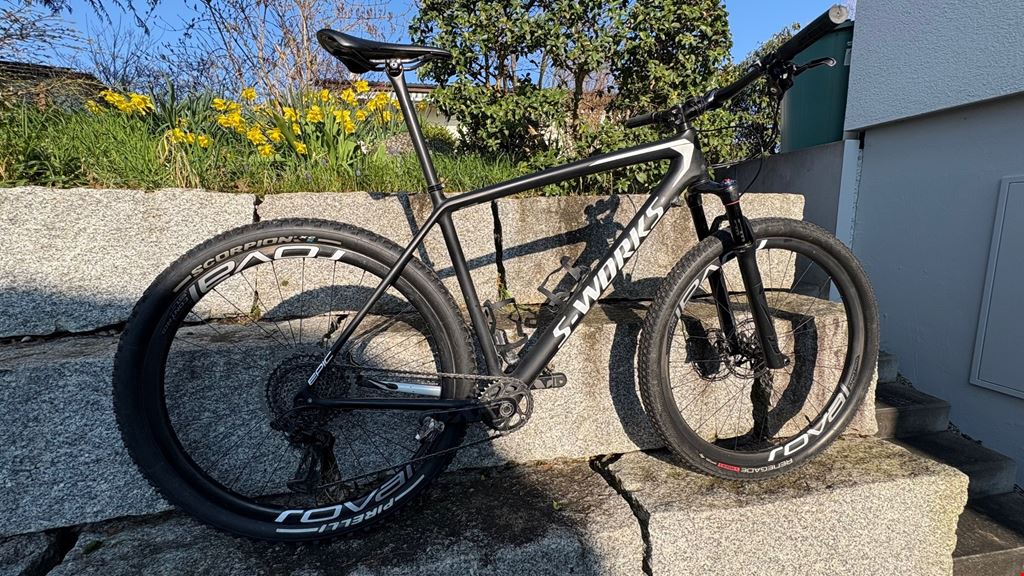 - Das Bike ist noch in Top-Zustand, weist normale Gebrauchsspuren auf. Es kann gerne vor Ort besichtigt und probegefahren werden. Inkl. SPD Pedale und Getränkehalter und allem Zubehör. Rahmengrösse XL passt für Körpergrösse 185-193 cm. Gewicht XL = 9 kg! FRAME S-Works FACT 12m, full carbon frame w/ S-Works layup, XC Geometry, internal split-housing cable routing, PF30 BB, 12x148mm rear end, triangulated post-mount 160mm brake FRONT HUB Roval Control SL, sealed cartridge bearings, 15mm thru-axle, 110mm spacing, 24h REAR HUB Roval Control SL, DT Swiss Star Ratchet, 54t engagement, SRAM XD driver body, 12mm thru-axle, 148mm spacing, 28h SPOKES DT Swiss Competition Race EAR DERAILLEUR SRAM XX1 Eagle™, 12-speed SHIFT LEVERS SRAM XX1 Eagle, trigger, 12-speed CASSETTE SRAM X01 Eagle, 12-speed, 10-50t CHAIN SRAM X01 Eagle, 12-speed w/ PowerLock CRANKSET SRAM XX1 Eagle, 175/mm crankarm, 30mm spindle REAR BRAKE SRAM Level Ultimate, hydraulic disc, carbon lever, titanium hardware, organic pads, 160mm rotor FRONT BRAKE SRAM Level Ultimate, hydraulic disc, carbon lever, titanium hardware, organic pads, 160/180mm rotor
