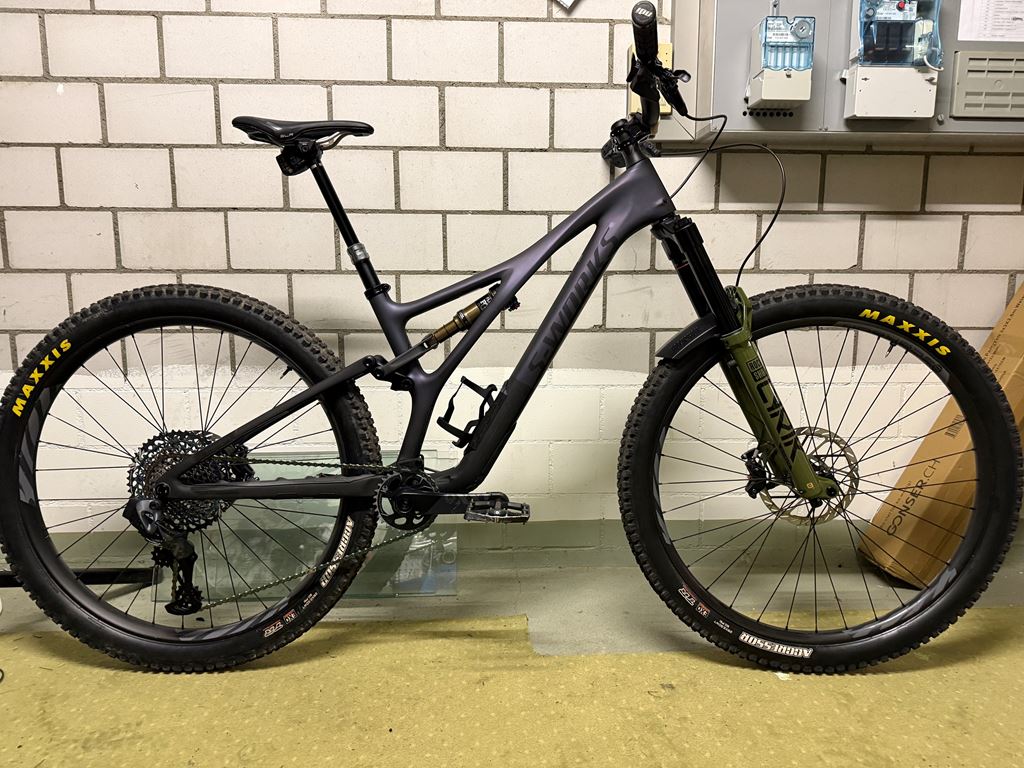 - Neu!! Verkaufe mein Specialized S-Works Stumpjumper Carbon 29" Neu. Das Bike ist Modelljahr 2023 und der Rahmen ist 1x gefahren. Die Rahmengrösse ist S3 (M, 165cm-180cm). Ich bin 1.81 cm. Lebenslängliche Garantie auf den Rahmen. Parts Rockshox Lyrik 160mm - neu SRAM Eagle AXS Reverb und Schaltung (100Km gebraucht) SRAM Code RSC für mehr Power (200/180mm) - neu Renthal Cockpit (780mm/50mm) IBIS Carbon Felgen 35mm (29‘) - neuwertig Industry Nine Naben - Neuwert Ohne Pedale. Gewicht: 12.1 Kg NP: 15‘000.—