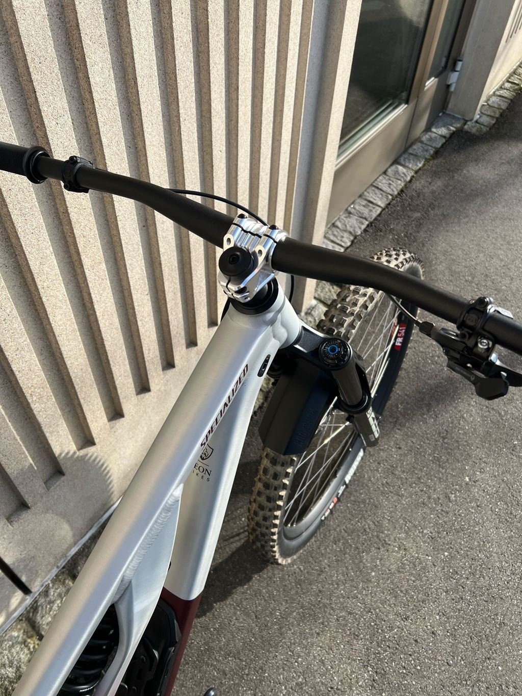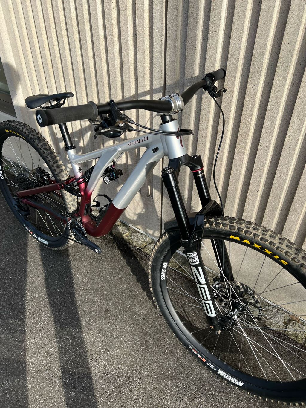 - Parkbike in neuwertigem Zustand. Das Bike wurde wenige Tage gefahren und befindet sich daher in top Zustand. Bei Bedarf kann eine absenkbare Sattelstütze nachgerüstet werden (Material inkl. Montage gegen Aufpreis von 200.-). Das Bike ist ausgestattet mit folgenden Parts: Schaltgruppe: Sram Gx mit XX1 Kette in schwarz Bremsen: Magura MT5 mit MDR-P Scheiben 203/203 und Loic Bruni Bremshebel Fahrwerk: -Gabel: RockShox Zeb Ult. 170mm -Dämpfer: RockShox Superdeluxe Coil Ult. Radsatz: -Naben: DT Swiss Classic 350 -Felgen: DT Swiss EX511 -Speichen: DT Swiss Competition silber mit Messingnippel auch in silber -Reifen: Maxxis Assegai 29x2.5 Vorbau: Deity Copperhead silver 35mm Giffe: ODI Longneck V2.1 Lenker: Specialized Alloy Bei Interesse oder Fragen melden.
