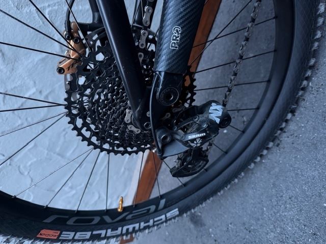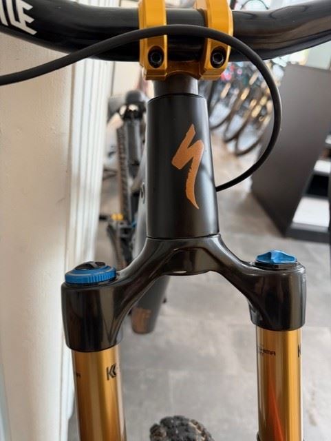 - Specialized Status 160 von 2023 Rahmen: Aluminiumrahmen in Customfarbe (Schwarz matt mit bronze Schriftzug) wurde vom Fachmann gemacht. HINTERBAUSERVICE WURDE LETZTES JAHR GEMACHT UND SEIT DEM 5 MAL GEFAHREN. Federgabel: Fox 36 Factory mit 160mm Federweg (wurde eine Saison gefahren). Dämpfer: Fox Float X Performance mit 160mm Federweg Lenker: Title Aluminium Lenker (750mm breite, 35mm Klemmdurchmesser) Griffe: Deity Lenkergriffe Vorbau: Title Vorbau gold COCKPIT WURDE IM AUGUST 2025 MONTIERT Bremsen: TRP DHR EVO (4-Kolben) Bremsscheiben (vorne sowie hinten): TRP 203mm 6-Loch BREMSEN INKL. BREMSSCHEIBEN WURDEN EBENFALLS IM AUGUST 2025 MONTIERT. Schaltwerk: Sram NX 12-Gang Kassette: Sram HG 12-Gang Kette: Sram GX 12-speed Kurbel:: Sram NX (165mm länge) Kettenblatt: Sram Kettenblatt mit O-Chain (von 4 bis 12 Grad Spiel einstellbar). Bereifung vorne: Schwalbe Magic Marry 2.4 Laufrad vorne: Roval Aluminium Laufrad (110mm Einbaubreite) Bereifung hinten: Schwalbe Magic Marry 2.4 Laufrad hinten: Roval Aluminium Laufrad (148mm Einbaubreite) Die Laufräder sind tubeless DAS BIKE HABE ICH ALS KOMPLETTVELO GEKAUFT (3300 CHF) UND ES WURDEN IMMERWIEDER NEUE/BESSERE TEILE VERBAUT DARUM IST ES FAST SCHON MEHR EIN CUSTOMBIKE. GROSSER SERVICE WURDE IM JANUAR 2026 GEMACHT UND SEIT DEM NICHT MEHR GEFAHREN.