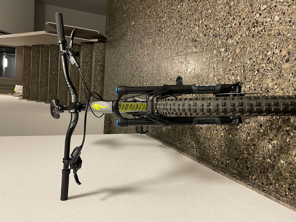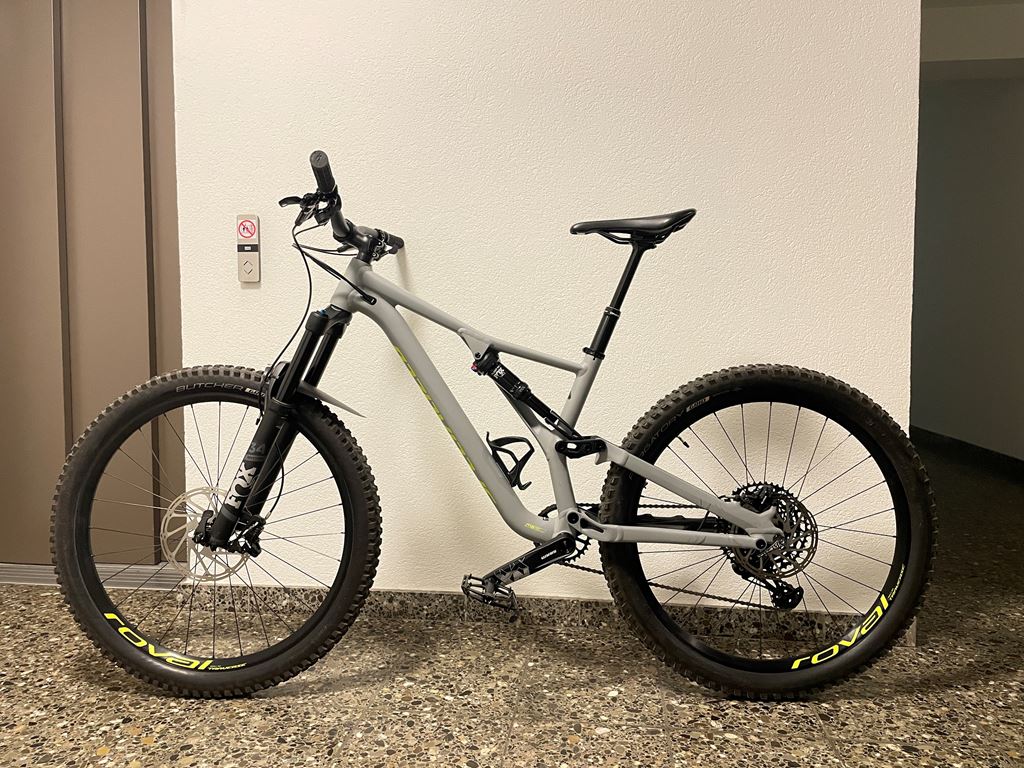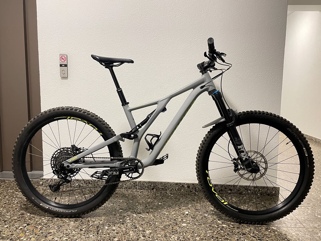 - Specialized Stumpjumper Comp Alloy 27.5, satin cool gray/team yellow in Grösse M / 41cm Sehr selten und mit sorgfalt gefahren, in technischen top Zustand, mit nur leichten Gebrauchsspuren am Rahmen und Pedale, (wenige kleine Steinschläge). Pedale wurden upgegradet, plus Zubehör. Weitere Fotos können angefragt- oder das Bike besichtigt werden. Produktinformation: Das Specialized Stumpjumper Comp Alloy 27.5 mit 12-Gang SRAM NX Eagle ist das radikalste Alu-Bike überhaupt. Mit neuen Rohrformen und einem asymmetrischen Design wird es deine Erwartungen an ein Trailbike deutlich übertreffen. Rahmen / Geometrie: Das komplett überarbeitete Stumpjumper verfügt über einen Rahmen und einen Hinterbau aus M5-Aluminium, ein asymmetrisches Design und der 27.5 Trail Geometrie, die genau das richtige Verhältnis aus Performance und Komfort bietet. M5 Aluminium: besonders zugfest, fantastisch formbar, hochfest; erreicht gewünschte Stabilität und Steifigkeit bei geringerem Materialeinsatz interne Kabelführung: sorgt für cleane Optik und längere Wartungsintervalle 148 mm Boost Hinterbau Steckachse Trail-Geometrie: ideale Mischung aus guten Klettereigenschaften, Downhillfähigkeit und der gewissen Leichtgängigkeit über Wurzeln oder felsige Passagen; Rahmen mit langen Oberrohren, kurzen Kettenstreben und flachen Lenkwinkeln bieten exzellentes Handling und stabiles Fahrverhalten Gabel Eine Fox 34 Rhythm Gabel übernimmt die Federungsaufgaben vorne mit steifen Standrohren und vielen Einstellmöglichkeiten. 150 mm Federweg einstellbare Dämpfung / Lockout 110 mm Boost Nabenbreite Steckachse Hinterradfederung / Dämpfer Der Fox DPS Performance Dämpfer verfügt über den Rx Trail Tune, der den Trail unabhängig von Rahmen- oder Reifengröße bestens glattbügelt. 150 mm Federweg einstellbare Dämpfung / Lockout FSR: mit vollaktiven, neutralen FSR Fahrwerken beherrschen Specialized Bikes seit gut 20 Jahren praktisch jedes Gelände. Das System entkoppelt Einflüsse vom Antrieb und vom Bremsen effektiv und schafft damit ultimative Kontrolle, hohe Effizienz und viel Komfort. Rx Trail Tune: kein Federelement von der Stange, sondern perfekt auf den Trail-Einsatz abgestimmt. Optimierte Kennlinien, Volumen und Aufbau - für ein angenehm geschmeidiges und doch effizientes Fahrgefühl, bei dem du jeden Millimeter Federweg ausnutzt. Anbauteile Vario-Sattelstütze: per Lenkerfernbedienung oder mit einem Hebel unter dem Sattel höhenverstellbar; bei steilen Abfahrten oder kurvigen Trails bringt das Absenken ein Plus an Bewegungsfreiheit SRAM NX Eagle: innerhalb des Eagle Ecosystems zu 100 Prozent kompatibel; 1x12-fach Antrieb mit 454 % Bandbreite 12 Gänge Kategorie / Einsatzbereich Trail: **** All Mountain: *****