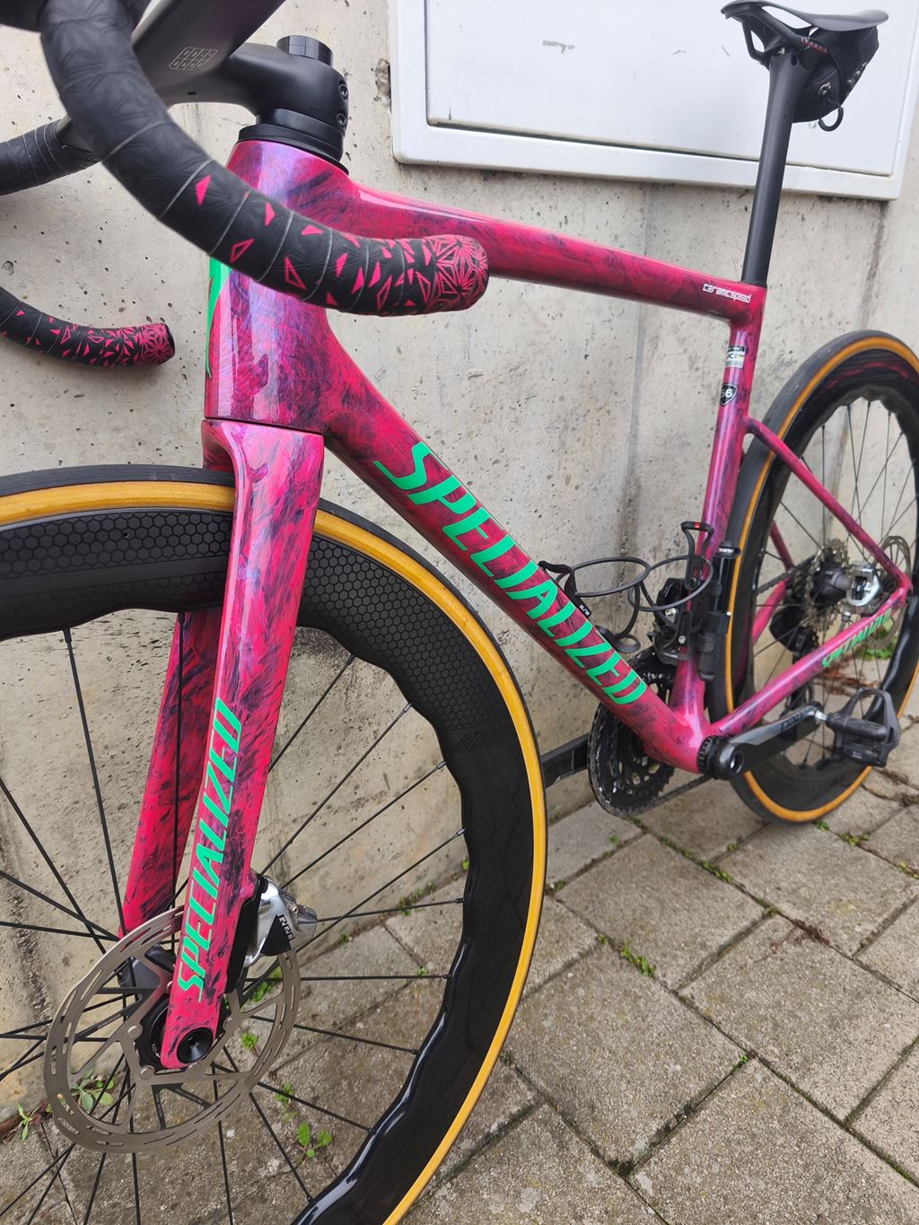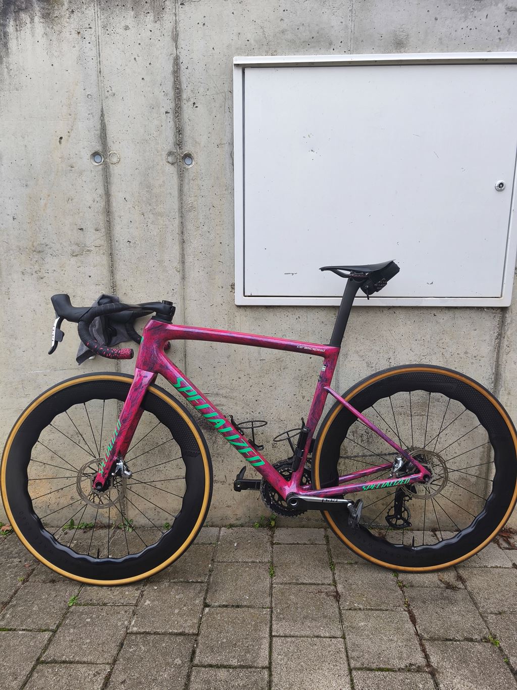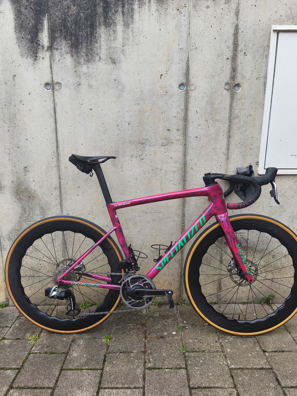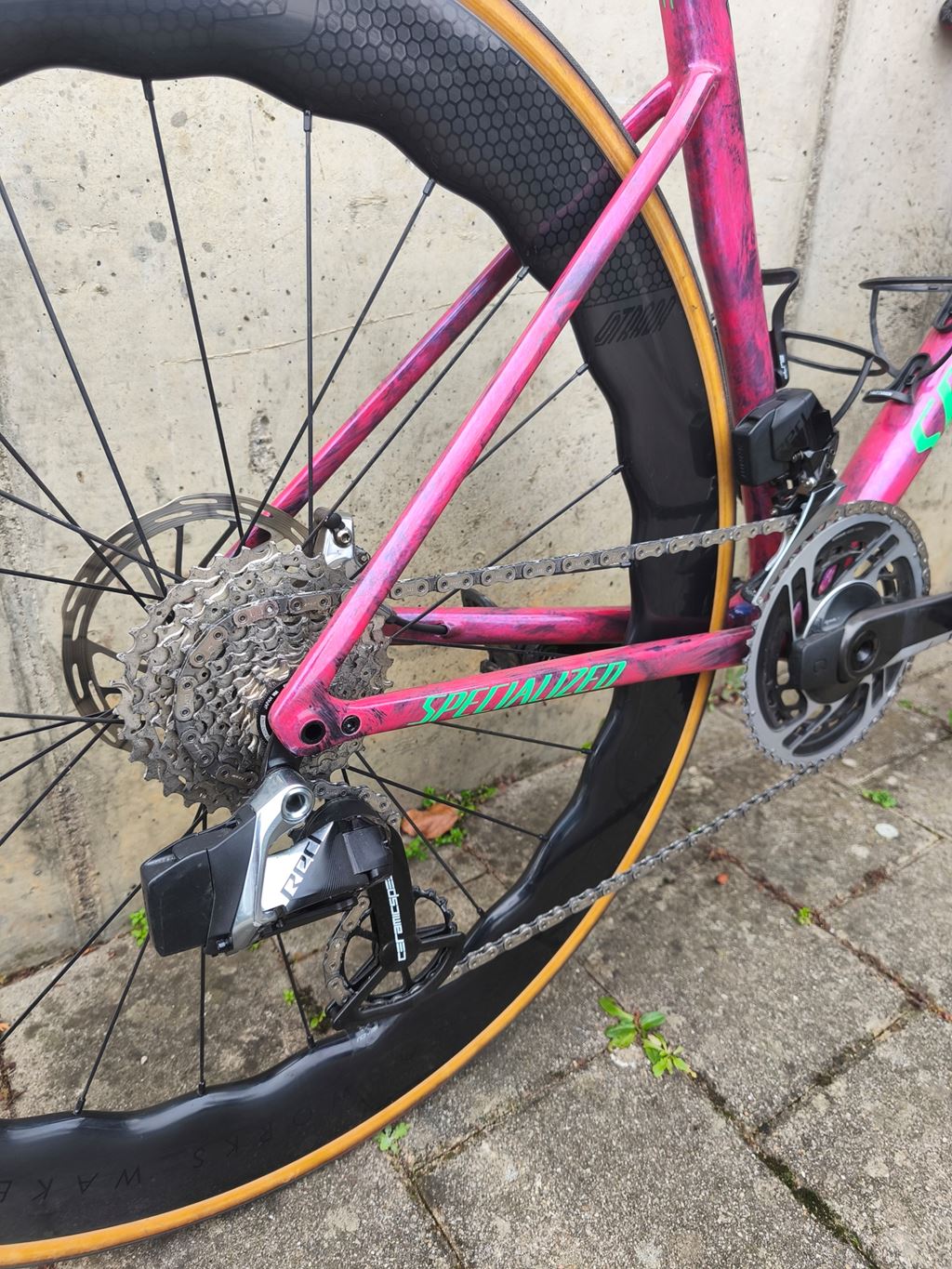 - Verkaufe mein Tarmac SL8 OHNE DIE RÄDER Darauffe Verbaut ist eine Sram Red noch die alte generation. Vorne und Hinten Sram hs2 160mm Bremsscheiben. Eine alte generation Ceramicspeed pullywheels mit carbon käfig. Shimano ultegra pedale. Polymer 360/100 cockpit. Supacaz lenkerband. 2x Elite Bidonhalter 1x kleine pumpe Spezi Power Expert sattel 143mm Wahlweisse mit satteltasche. 2x Spezi Cotten Pneu 26c 2x 80mm Aerothan schläuche. 1x shimano Kassette 11-36 1x Sram 11-34 kassette. 1x sram Red kette Gewachst mit CS wachs. Sram Dub Trettlager Die Laufräder sind nicht zu Verkaufen. Bei bedarf kann ich dir einen anderen Laufradsatz auftreiben. (Arbeite Als Fahrradmechaniker) Falls fragen sind gerne Melden