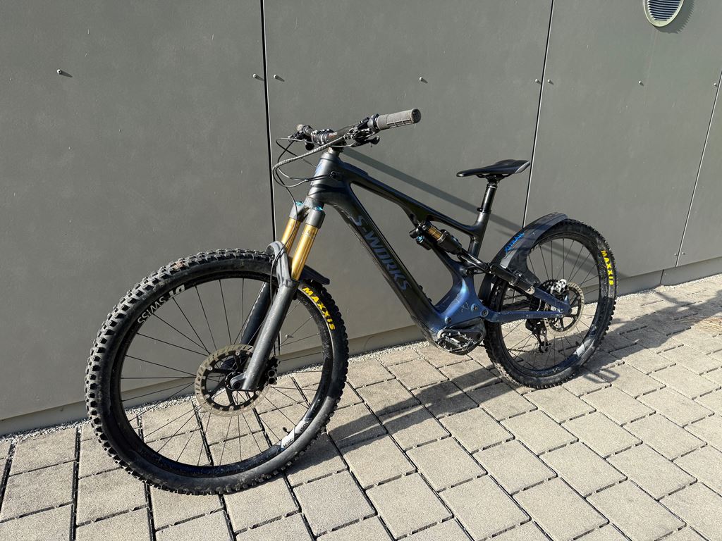 - Specialized Turbo Levo S-Works Custom 2022, 700wh mit DT HXC1501 LRS ! Absoluter Dream Build - best of :-) Artgerechte Haltung, guter Zustand, macht alles mit Grösse S5/XL Neue Elektronik (Remote, Kabelbaum, Speed Sensor) (07/23) Neuer Motor (10/24) 1900km Original DÄMPFER Fox Float X2 Factory, 210x55 150mm (NEU 12/23 2024er Modell - Service + neue Kartouche 10/24) GABEL Fox Float 38 Factory, 160mm (Grosser Service 03/25) KASSETTE Sram XG-1275, 1x12, 10-52t (NEU 03/25) KETTE SRAM GX Eagle, 1x12 (NEU 03/25) KURBEL Praxis Carbon M30, 160mm SCHALTHEBEL SRAM Eagle AXS Rocker Paddle (Shiftmix) SCHALTWERK SRAM X01 Eagle AXS (NEU 06/25) Custom LAUFRADSATZ DT Swiss HXC1501 Carbon 29" vorne, 27.5" hinten (30mm), 30t ratchet KETTENBLATT Praxis, 32T, Stahl (NEU 03/25) LENKER Syntace Vector Carbon 780, 20mm, 12° VORBAU Syntace Megaforce3, 30mm, 6° SATTELSTÜTZE Bikeyoke Revive Max 213mm mit Triggy (Shiftmix) BREMSEN Magura MT7 mit HC3 Hebel + Shiftmix BREMSSCHEIBEN Magura MDR-P 220/220 (NEU 07/24) BREMSBELÄGE Magura Performance hinten, Race vorne REIFEN Maxxis Assegai 29x2.5(h) DD, Maxxis Assegai 29x2.6(v) Exo+, tubeless SATTEL Acefactory GRIFFE DMR Deathgrip (neu) Gewicht 22.4kg (700wh), 21.4kg (500wh) -ohne Pedale Optional: -Zweiter Akku (500wh) - 3.0kg -Cascade Turbo Levo Link (150->160mm hinten mit Original X2) (cascadecomponents.de/products/turbo-levo-link-2022-current)