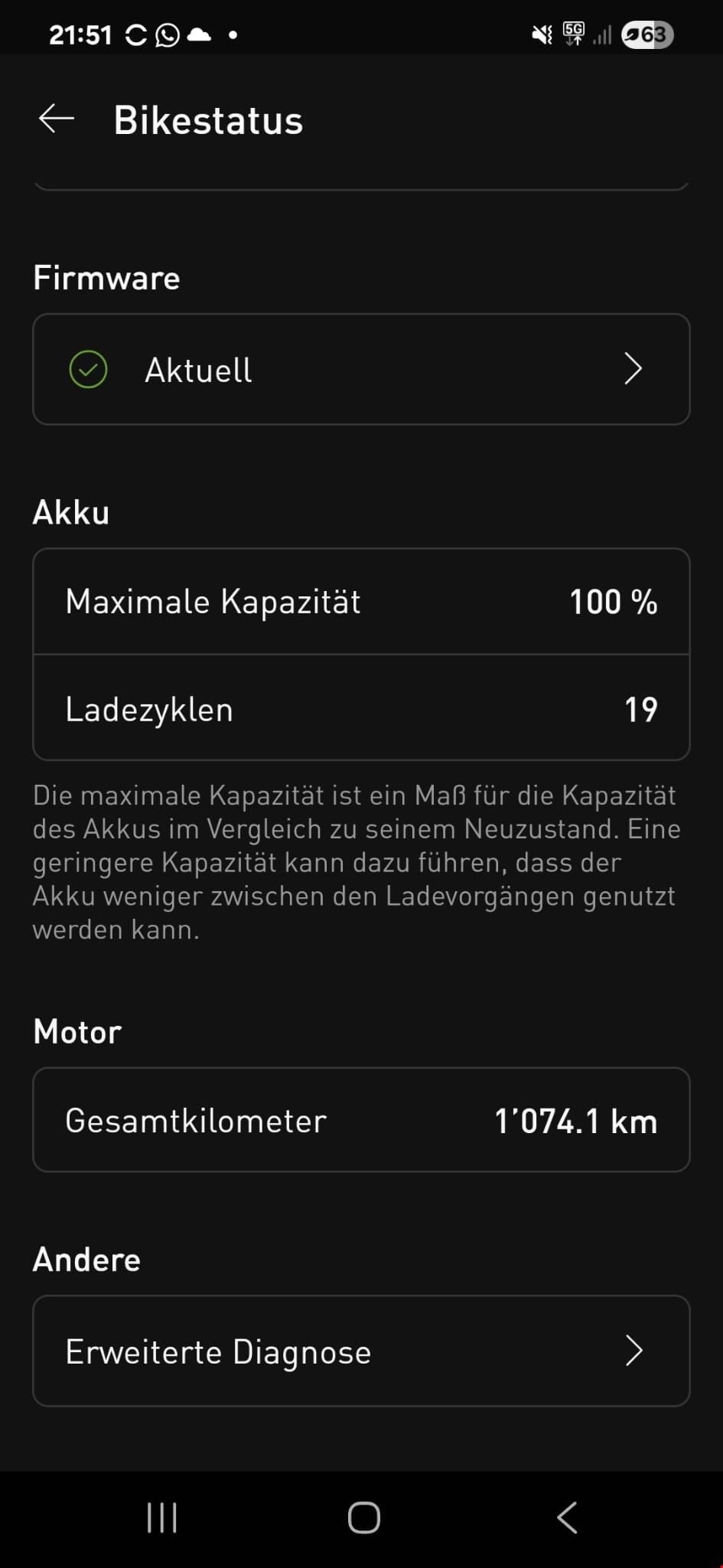 - Original Spec Turbo Levo Gen 4 1080km auf dem Motor Läuft absolut einwandfrei, Battery 100% Leistung Neustes Software Update gemacht Dir verkaufe ich das Bike natürlich geputzt! :-) Technische Spezifikationen E-Bike Motor Specialized 3.1 Motor, 105Nm torque, 810W power Akku Specialized Turbo X2 840Wh integrated battery pack Display/Lenkerfernbedienung Mastermind TCU, 2.2" high resolution screen, fully customizeable with Specialized app, works with Apple Find My Ladegerät Specialized 4amp charger Rahmenset Rahmen Levo 4 frame, 150mm travel, w/SWAT storage, side entry battery, fork travel up to 180mm, adjustable head angle, BB height, chainstay length Sattelklemme Alloy, 38.6mm Gabel Fox 38 Performance Elite series, 29", Grip X2 damper,15x110mm axle, 44mm offset, 160mm of travel Fahrwerk Dämpfer Fox Float X Factory with Specialized GENIE Shock Tech, Ride Dynamics Trail Tune, 2-position lever, LSR adjustment, 210x55mm Bremsen Vorderradbremse SRAM Maven Silver, 4-piston caliper, hydraulic disc Hinterradbremse SRAM Maven Silver, 4-piston caliper, hydraulic disc Antrieb Schalthebel SRAM AXS POD Controller w/discrete clamp Schaltwerk SRAM X0 Eagle Transmission Kassette SRAM XS 1295, 12 speed, 10-52 Kette SRAM X0 Eagle Transmission 12-Speed Flattop Chain Kurbelgarnitur SRAM XO Alloy crank, 155mm, ISIS interface Kettenblätter SRAM 34t T-Type chainring, 104 BCD, steel Laufräder Vorderreifen Butcher, GRID GRAVITY casing, GRIPTON® T9 compound, TLR, 29x2.4" Vorderrad Traverse HD Carbon 29" Rim, DT Swiss 350, 15x110mm, 28h Hinterreifen Butcher, GRID GRAVITY Casing, Gripton T9 compound, TLR, 27.5x2.4 Hinterrad Traverse HD 27.5" carbon rim, DT Swiss 350, XD freehub body, 12x148mm, 28h Schläuche Standard, Presta Valve Cockpit Vorbau Industry 9 Mountain stem, 35mm clamp, 40mm length Lenker Race Face Era Carbon Handlebars, 35mm clamp, back-sweep 8-degrees, up-sweep 5 degrees, 800mm width, S1/S2: 40mm rise, S3-S6: 55mm rise Lenkergriffe Deity Lockjaw Grips Sattel Bridge Expert with MIMIC, Hollow Ti rails Sattelstütze Bike Yoke Revive Max 3.0, 34.9, S2:125mm, S3:160mm, S4: 185mm, S5/S6:213mm Zubehör SWAT™ SWAT Internal downtube storage Produktdetails Konformitätszertifikat As applicable, certified to UL 2849 (e-system) and/or UL 2271 (battery) by UL Solutions and/or SGS. For information on lithium-ion battery standards and regulations in New York City, visit: www.nyc.gov/fdny/batteries Gewicht Produkt-ID 221339 Gewicht 23.94 kg (52 lb, 12.5 oz) Gemessene Rahmengröße S4 *Gewichte basieren auf der Produktion lackierter Rahmen, wie abgebildet. Tatsächliche Gewichte variieren je nach Farbgebung, Rahmengrösse und Komponentenvariation. Spezifikationen können ohne Vorankündigung geändert werden.