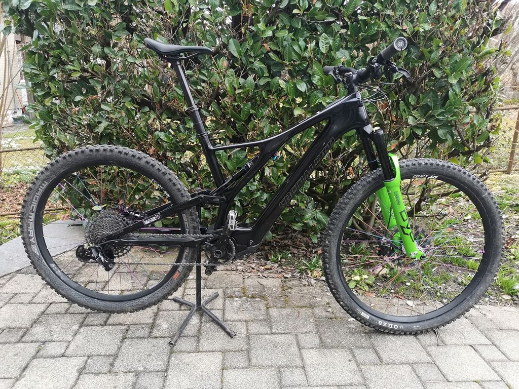 - Motor: Specialized SL 1.1 Speichen Pillar PSR oil slick (Regenbogen) Akku: 320 Wh, voll integriert Rahmen: FACT 11m Carbon, 29" Trail-Geometrie Federung: vorn DVO Diamand D1 29" 160mm; Gabelservice im Jan. 2026 gemacht Federung: hinten 150 mm (FOX Rhythm 34 & FOX Float DPS) Antrieb: SRAM NX Eagle, 12-fach Bremsen: SRAM Guide R, hydraulische Scheibenbremsen (220 / 180 mm) Sattelstütze: X-Fusion Manic Vario-Sattelstütze Bedienung: Specialized TCU mit Lenker-Remote, ANT+ / Bluetooth Rahmengrösse S3 Felge vorn: DT Swiss FR 541 29"; Nabe Industrie Nine Hydra 15x110mm Boost silber Felge hinten: DT Swiss FR 541 27.5"; Nabe Industrie Nine Hydra 12x148mm Boost silber Freilauf Shimano HG Grösse L, ich bin 175cm und ist tip top Bike ist in einwandfreiem Zustand. Verkaufe es, weil ich mir ein neues zugelegt habe.
