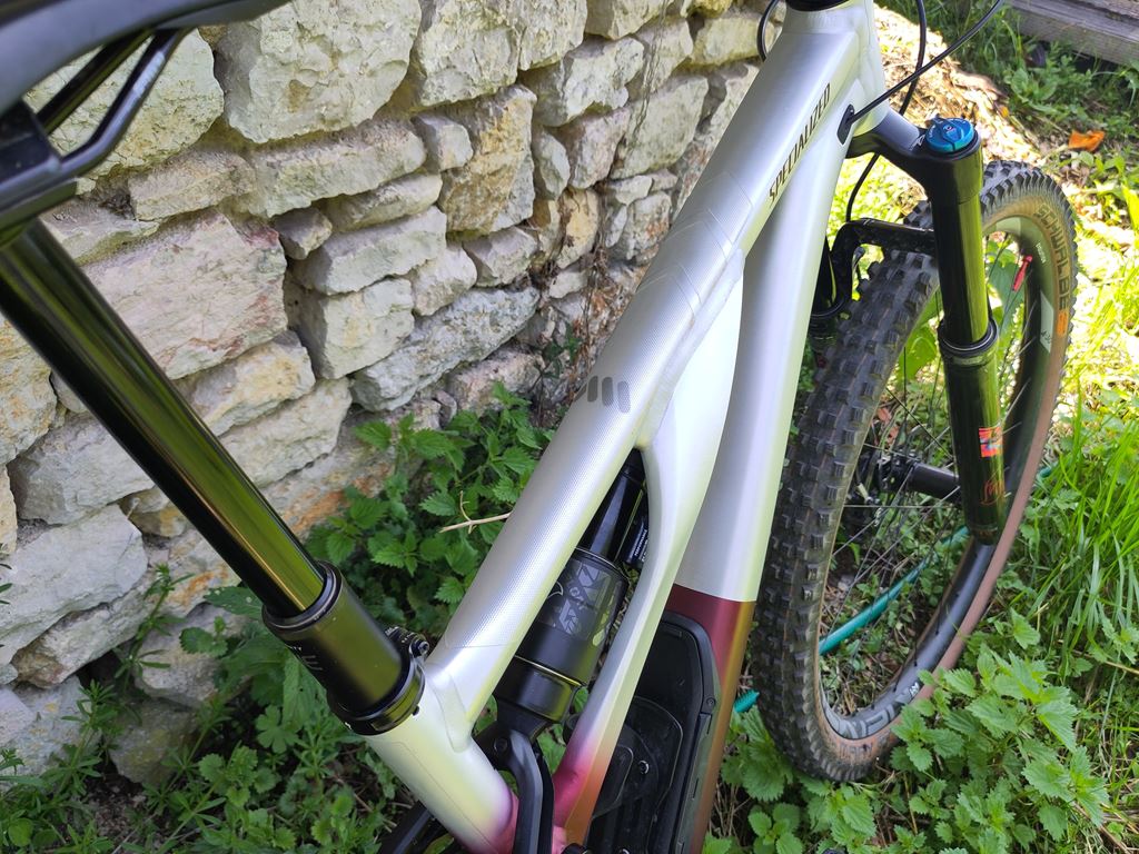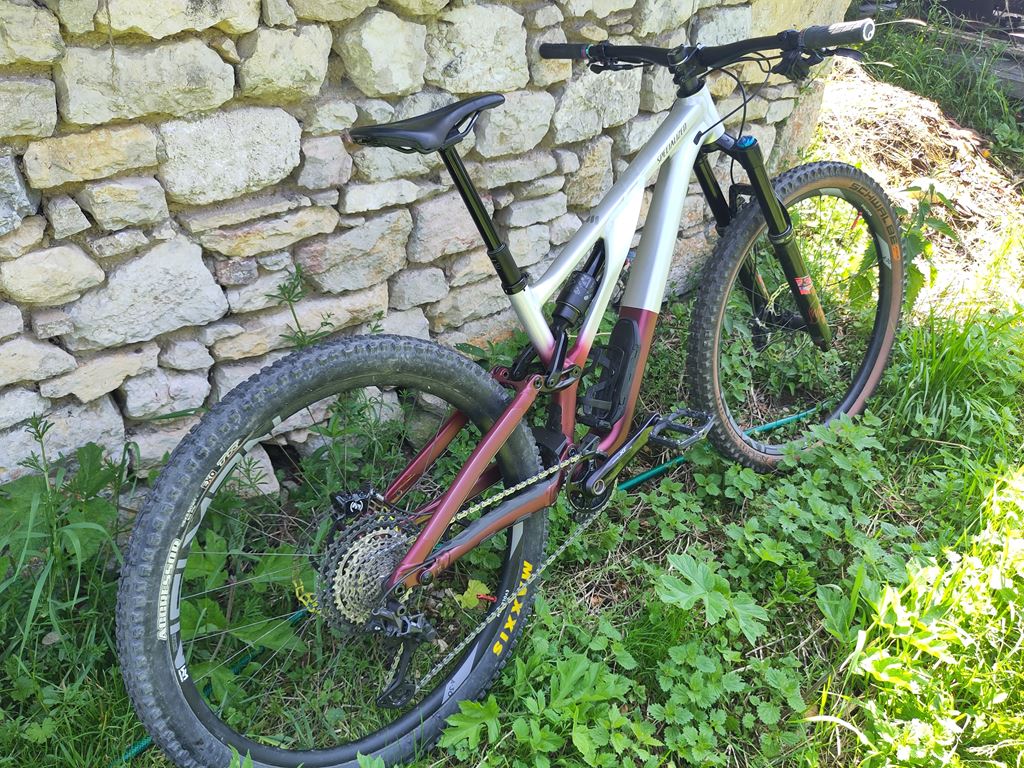 - Je vends mon stumpjumper Evo alloy d'occasion. Il a très peu été utilisé. Montage custom. Cascade LINK installé. l'original est également fourni. Taille de cadre S3 Vitesses Shimano XT 12v Guide chaine OneUp Freins Shigura (leviers shimano XT et étriers Magura MT5) Disques de frein Galfer 203mm cockpit Sixpack Millenium 805 carbon Grips Ergon GE1 Fourche Fox 36 performance 160mm Amortisseur Fox X2 performance Tige de selle OneUp 180mm Selle Specialized Roues 29" Newmen Evolution A-30 Pedales Sixpack Porte bidon et multitool Specialized
