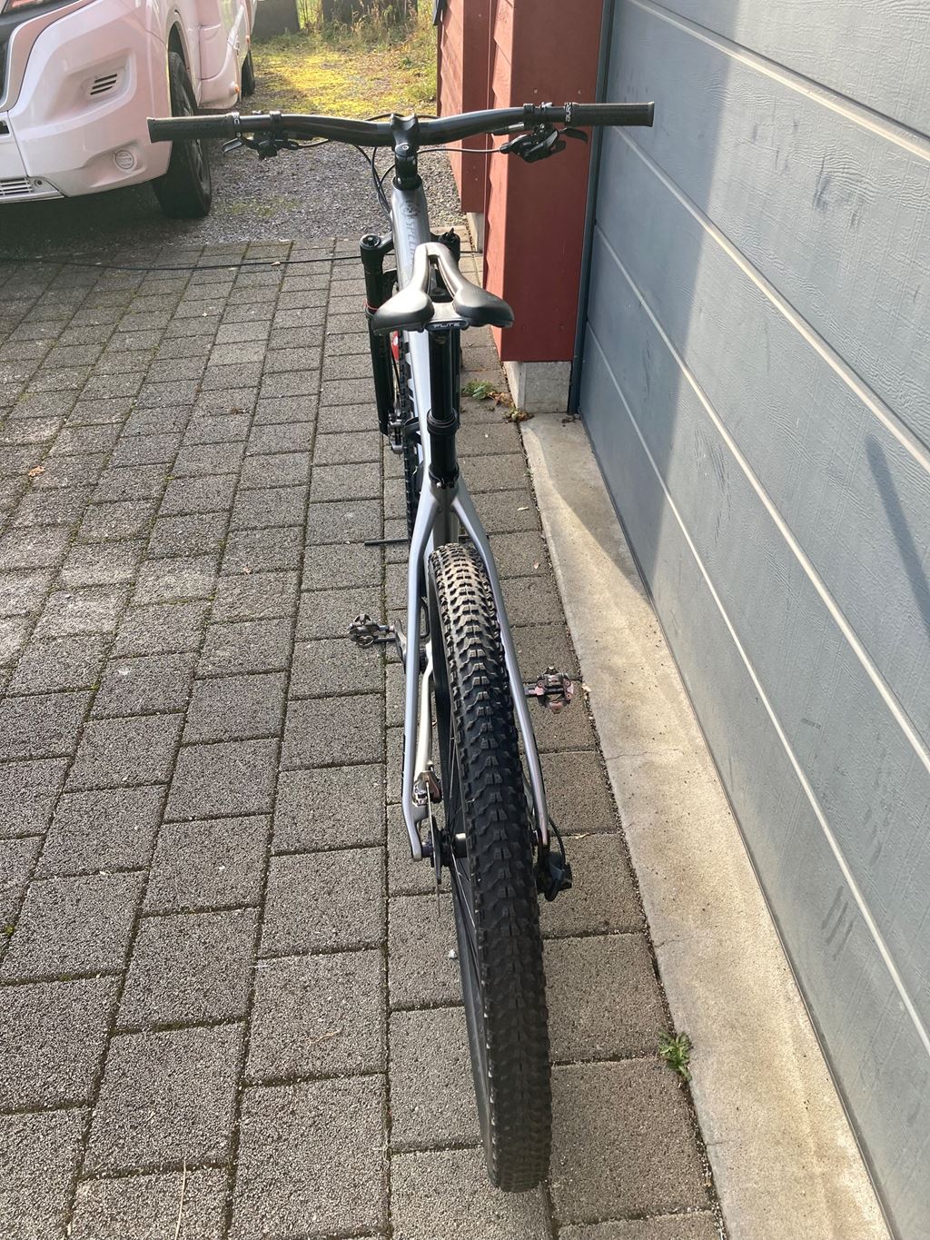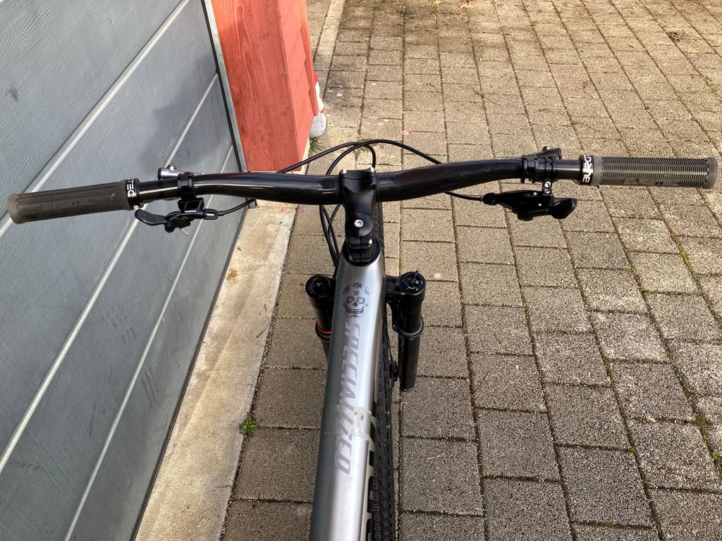 - Custom Build Hardtail Bike für Körpergrösse ca. 165 - 180 cm Grössenangabe: 43 cm / Oberrohr 58 cm Rock Shox SID SL Ultimate Gabel XTR Bremsen GX Schaltung Absenkbare Sattelstütze DT Swiss XM 1700 Räder Rahmen leicht beschädigt von Bremshebel
