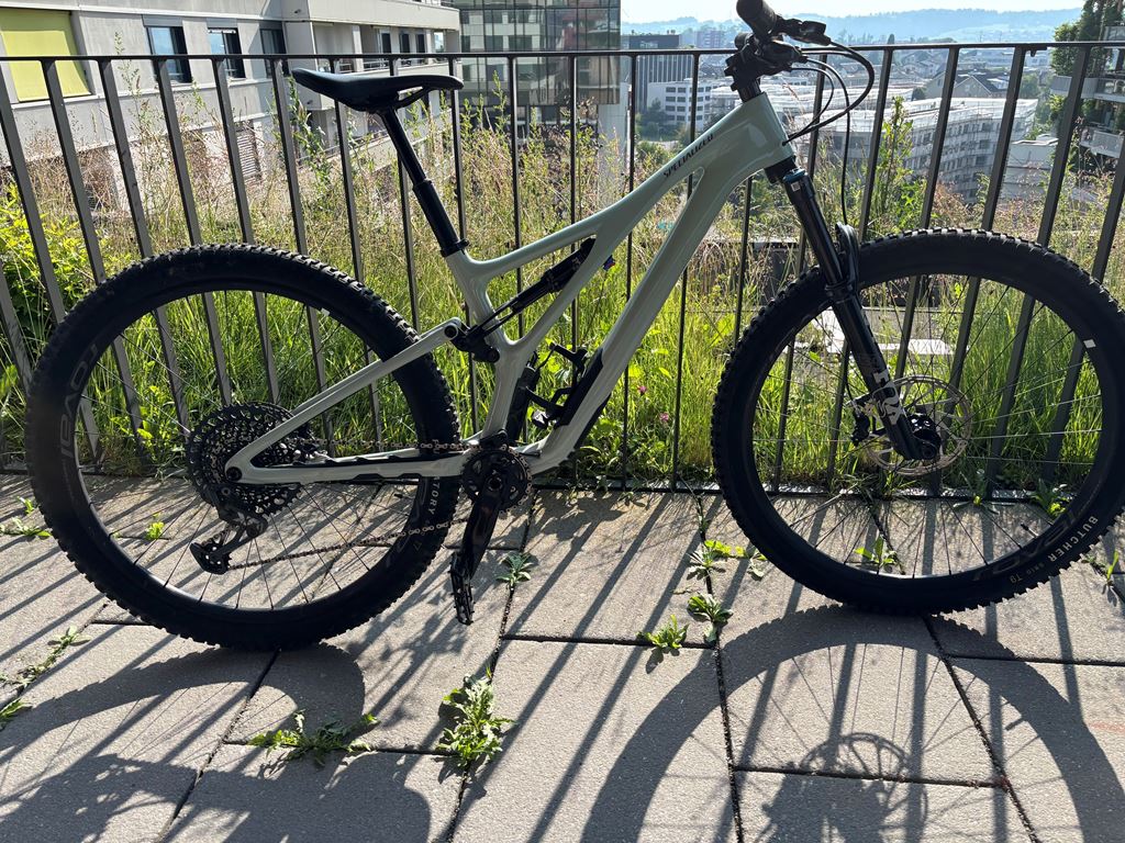 - Specialized Stumpjumper Expert (Modelljahr 2022/2023) zu verkaufen. - Farbe: White Sage - Zustand: Technisch und optisch wie aus dem Laden; nur ca. 100 km gefahren - Kaufdatum: Juli 2023 - Rahmengrösse: S3 - Neupreis: 7’300 CHF - Verkaufspreis: 4000 CHF (Verhandlungsbasis) - Rahmen: FACT 11m Carbon (S-Sizing), mit praktischem SWAT; Staufach im Unterrohr. - Fahrwerk: Fox Float 34 Performance Elite Gabel (140mm) & Fox Float DPS Performance Elite Dämpfer (130mm) - Antrieb: Komplette SRAM X01 Eagle 12-fach Gruppe (sehr präzise und leicht). - Laufräder: Roval Traverse Carbon 29" (extrem leicht und steif). - Bremsen: SRAM G2 RSC 4-Kolben-Bremsen mit hervorragender Dosierbarkeit. https://www.specialized.com/ch/de/stumpjumper-expert/p/199757?color=320342-199757 Das Bike kann gerne in Rotkreuz besichtigt werden; Probefahren möglich.Nur Abholung, kein Versand