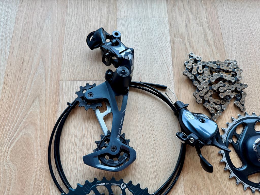 - Verkaufe meine komplette Sram Schaltgruppe. War an einem Yeti SB160 montiert. Wurde weniger als 1 Woche gefahren, daher in einem sehr guten Zustand. Kurbel auf der Antriebsseite und Schaltwerk haben leichte Kratzer. Schaltwerk: Sram X01 12-Fach Kassette: Sram X01 12-Fach 10-52 Schalthebel: Sram GX Kurbel: Sram Carbon, 170mm mit 30T Ritzel Kette: Sram GX 12-Fach Bei Interesse auch gerne per WhatsApp erreichbar +41(0)792958232