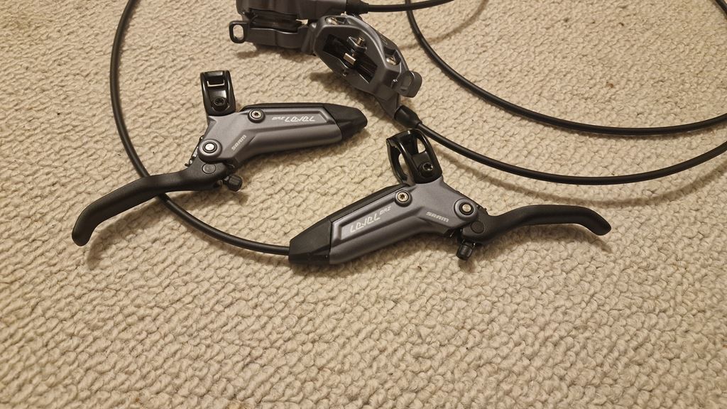 - NEU UNGEBRAUCHT Wunderschöne Sram Level 4-Kolbenbremse. Ganzes Set: 2x Bremshebel, 2x Bremssattel, 1x Bremsleitung vorne, 1x Bremsleitung hinten Inkl. NEUE Bremsbeläge Von meinem neuen Bike demontiert, keinen Meter gefahren.