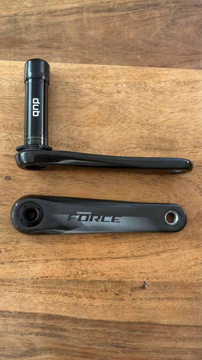 - Selling my SRAM Quarq PM-AXS SPDR D1 Powermeter (107 mm bolt circle). Technically absolutely reliable and fully functional - measures precisely with ± 1.5 % accuracy. Supports AXS, BLE and ANT+, offers up to 200 hours of battery life, is IPX7 waterproof and temperature tolerant - simply a reliable power meter! The power meter always ran flawlessly. I changed the button cell (CR2032) about once a year. Included in the set: - Quarq Power-Meter Spider (107 mm BCD) - SRAM Force DUB carbon crank arms, length 170 mm - Chainrings 48/35 teeth - 8x mounting bolts - 1x CR2032 battery Condition: - Powermeter: technically top, ready for immediate use - Crank arms: slight signs of wear (optical), otherwise very good - Chainrings: normal use, fully functional Ideal for anyone looking for precise training data and a light, stiff SRAM Force D1 crank in a complete package.