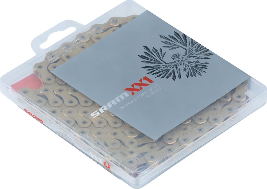 - SRAM XX1 Eagle 12-fach Kette Gold Herstellernummern: 00.2518.024.020 Zustand: Neu Originalverpackt Lieferumfang: 1 x Kette SRAM PC XX1 Eagle 1 x Kettenschloss SRAM PowerLock