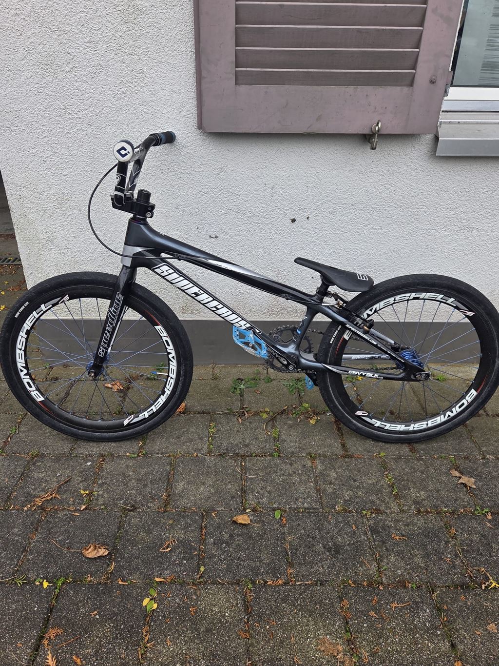 - Das superleichte Supercross BMX aus Carbon (4.5kg) wurde 1 Season gebraucht und hat ein paar winzigkleine Kratzer die ja unvermeidlich in diesem Sport sind.
