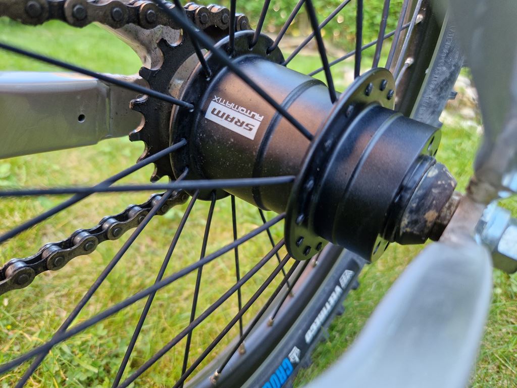 - Da mein Sohn rausgewachsen ist, verkaufe ich ein gut erhaltenes Kinderbike. Es handelt sich hier noch um ein Original-Supurb, also aus dem Alutech-Umfeld. Das Velo hat eine Sram 2-Gang Automatixx Nabe und schaltet somit selbstständig. Es kommt mit den montierten Veetire-Reifen und einem schmaleren Reifenset. Dazu habe ich eine kurze und lange Sattelstütze.