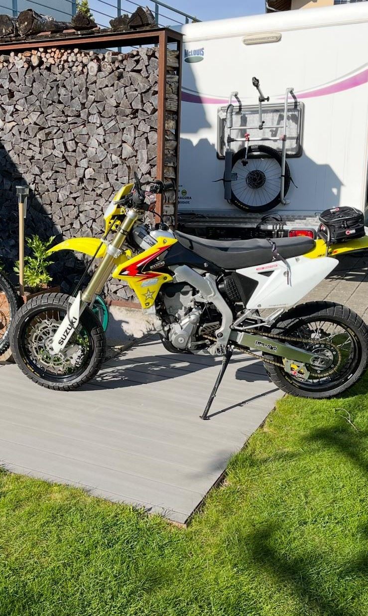 - :-) Suzuki Valenti Racing RM450X Supermoto - Power, Style & purer Fahrspass! Verkaufe meine Suzuki Valenti Racing RMX 450 Z eine sportliche und top gepflegte Supermoto, die jede Fahrt zum Erlebnis macht! Ideal für alle, die Dynamik, Stil und ein direktes Fahrgefühl lieben - ob auf Landstrassen, Pässen oder in der Stadt. Fahrzeugdetails: 1. Inverkehrssetzung: 15.06.2012 Kilometerstand: 18000 km MFK: gültig ab 19.06.2023 Gewicht: 110 kg Zubehör: Kompletter zweiter Enduro Laufradsatz mit neuen Heidenau-Reifen / Vorderrad 21" / Hinterrad 18" Sozius-Zulassung - Fahrspass auch zu zweit! Preis: CHF 5750 Die RMX 450 Z überzeugt durch sportliches Handling, kernigen Sound und gepflegten Zustand. Die Suzuki wurde nicht für Rennzwecke verwendet! Einsteigen, losfahren und den Adrenalinkick geniessen - diese Supermoto bringt garantiert ein Lächeln unter den Helm! :-))