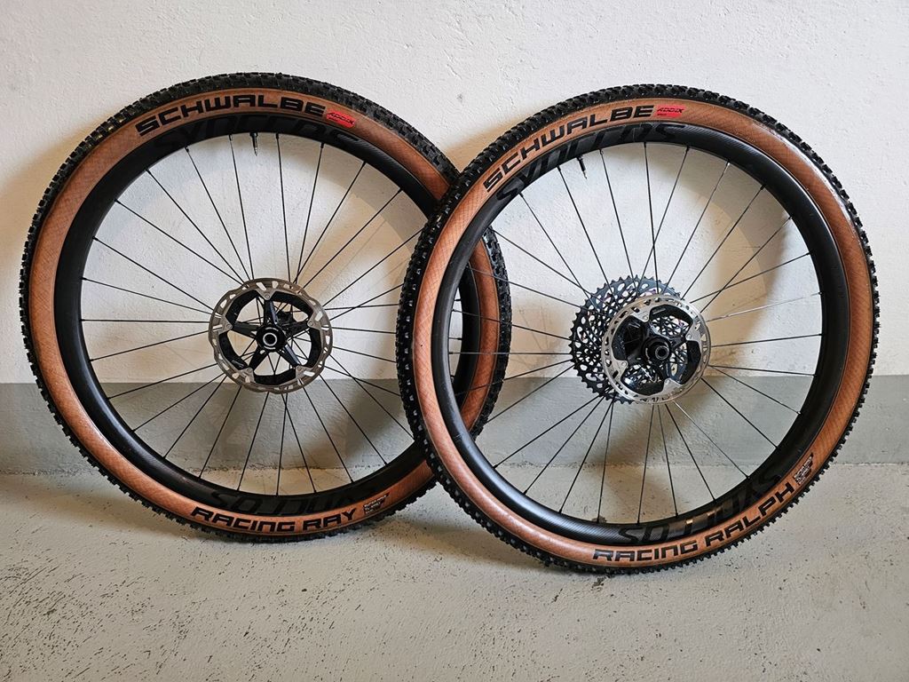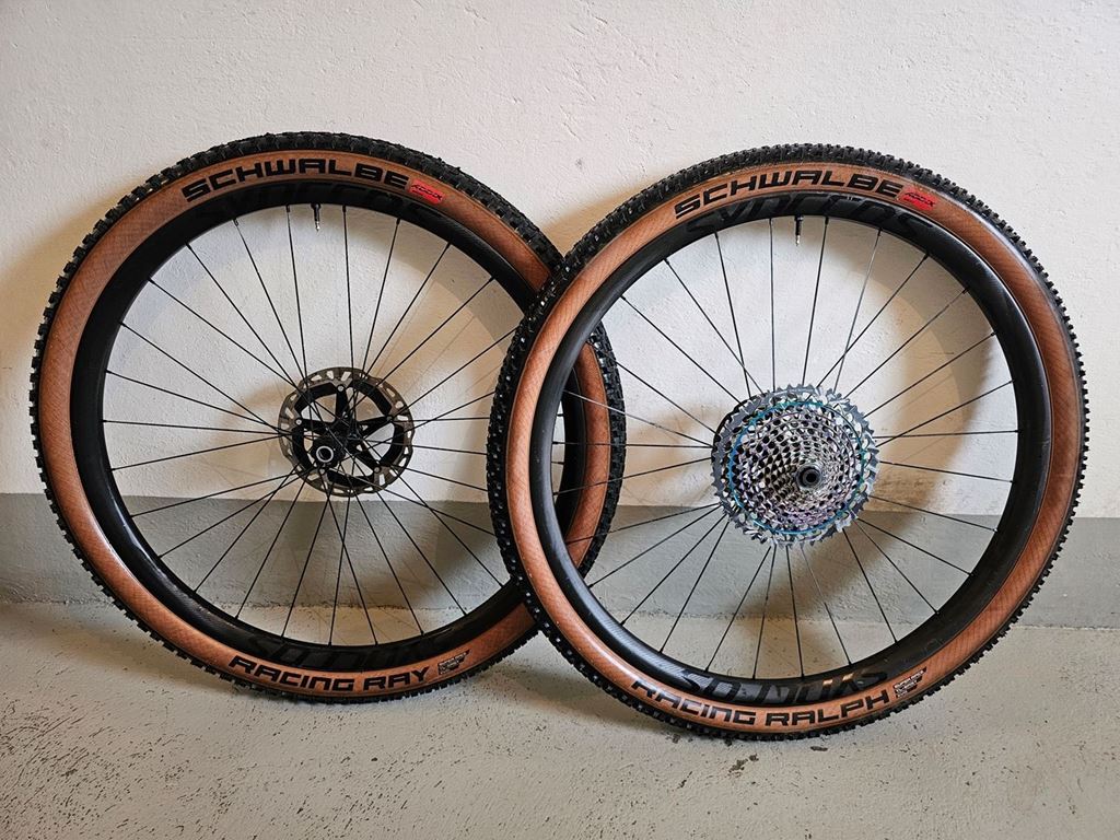 - Sehr leichter 29" Carbonradsatz zu verkaufen. 30mm Innenbreite, Boost Standard (15x110mm / 12x148mm). Gebrauchter aber guter Zustand. Inkl Kassette Sram XX1 Rainbow (gebraucht) und Bremsscheiben (gebraucht) 180mm/160mm (2x 160mm auf Wunsch auch möglich). Inkl Reifen Schwalbe RacingRay/RacingRalph in gutem Zustand, Tubeless montiert.
