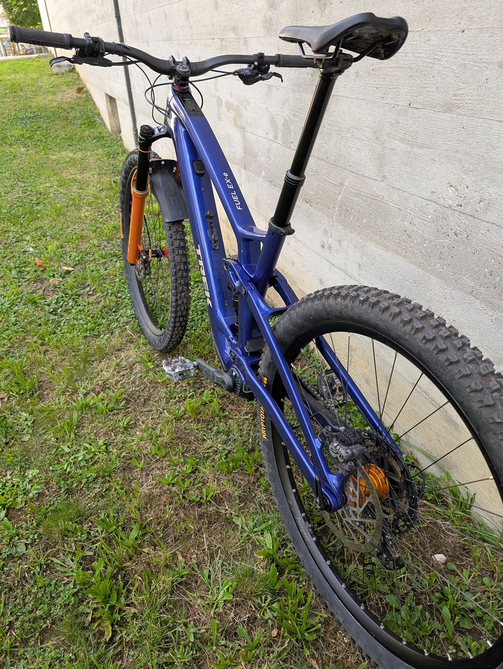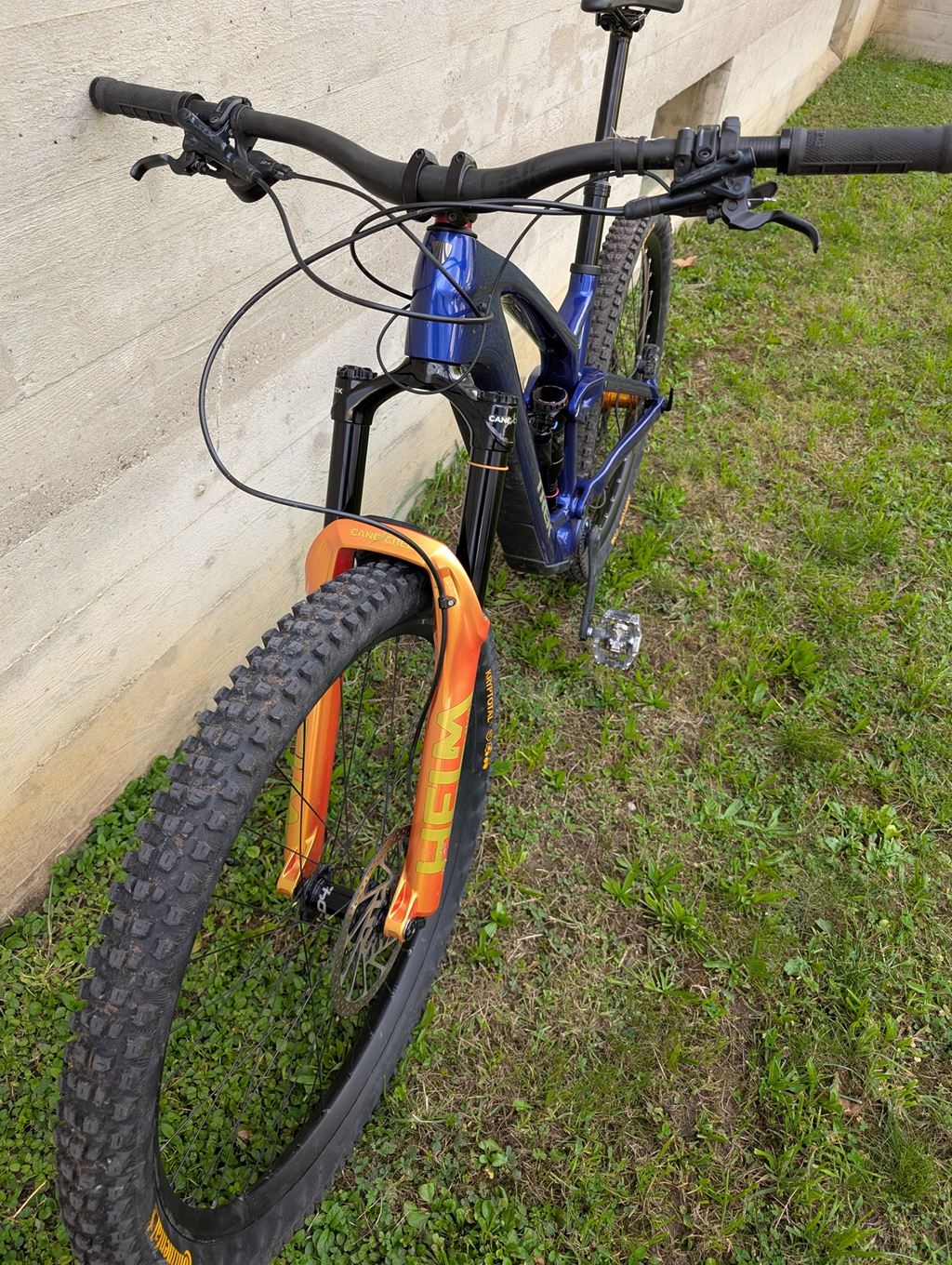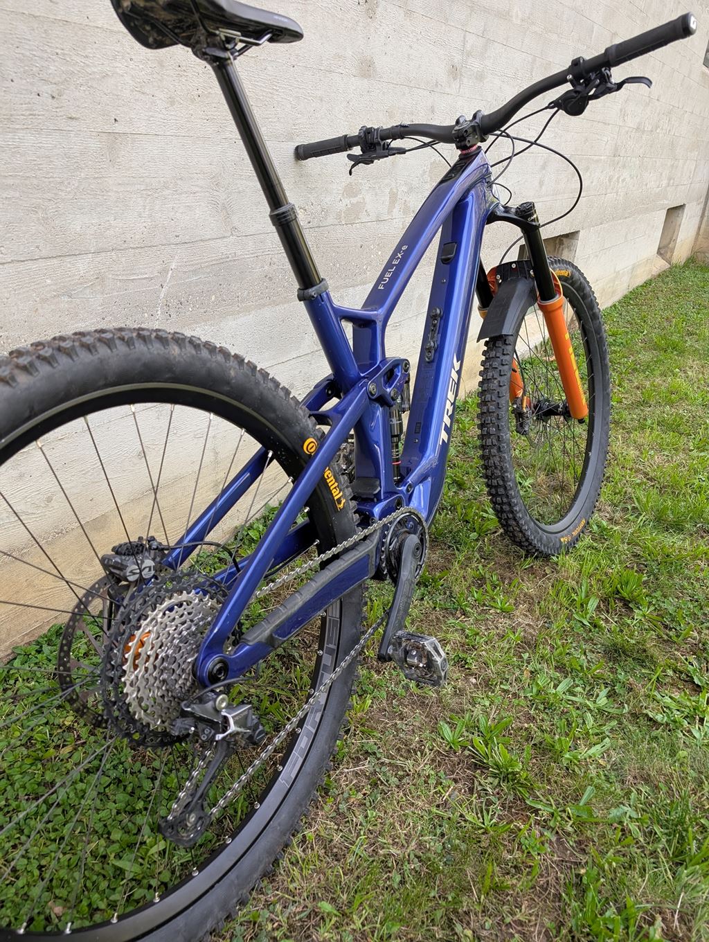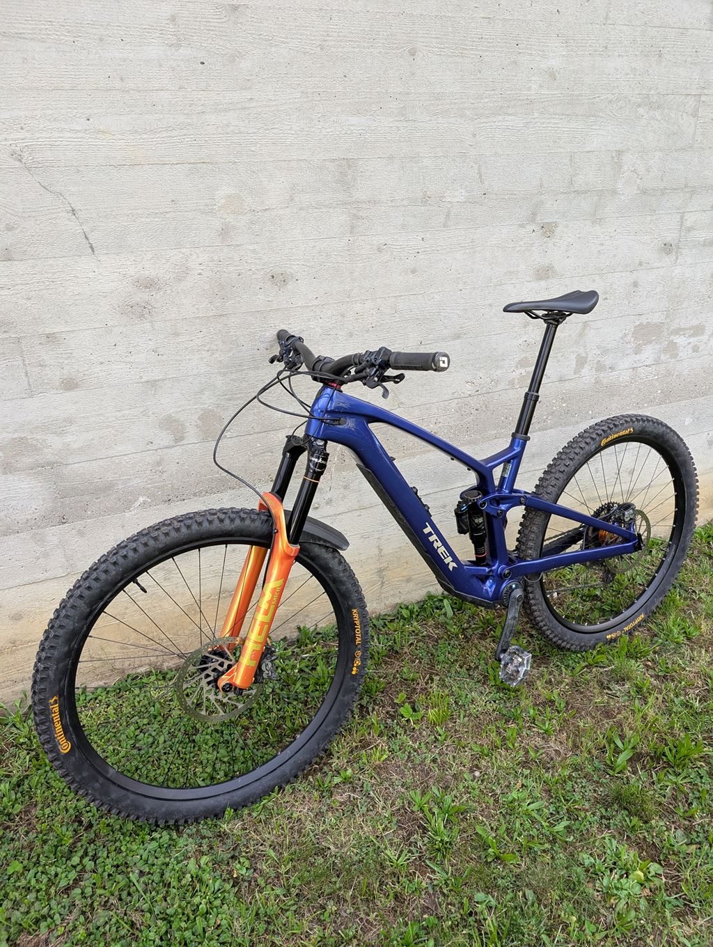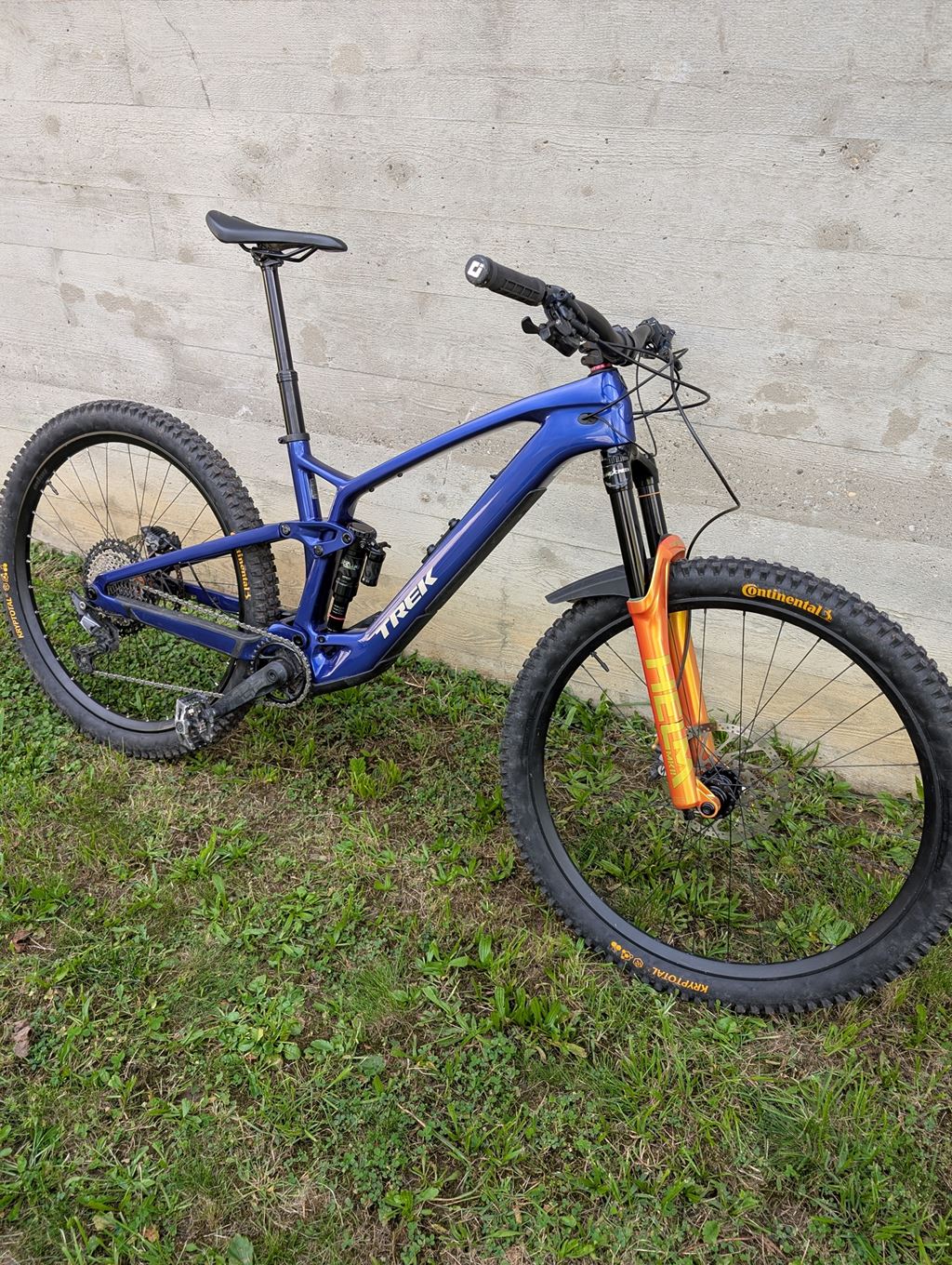 - Rahmen: Trek Fuel ex-e carbon, large. Basierend auf dem 9.5-Modell. Jedoch fast nichts original. Dämpfer: Rockshox superdeluxe ultimate mit Trek-tune (Sommer 2025 hier als neu gekauft nachgrüstet, den originalen deluxe select plus gebe ich dazu). Gabel: Canecreek Helm MK2 in Sonerlackierung - hammer Gabel, ich will keine rs oder fox mehr. 160mm, kann aber problemlos getraveled werden. Laufräder: VR: Hope Pro 4 mit DT Felge (aus meinem biobike; HR: Hope pro 5 in gold mit Hope fortus Felge. Pneus: Continental Kryptotal soft mit Enduro-Karkasse aus Sommer 2025. Hinterrad mit Cushcore. Kassette: Shimano XT, Zustand gut. Bremsen: Shimano SLX-Hebel mit Saint Zangen (die hatte ich noch) und den originalen TRP-Scheiben. Beläge hinten August 2025 Zustand gut, VR original und fast durch, gebe aber neue dazu! Lenker: OneUp carbon 800mm Vorbau: OneUp Griffe: ODI????? Oder RaceFace Schaltung: Shimano Deore trigger und Umwerfer, original Kette: KMC, neu, eine Ausfahrt Dropper: Original Bontrager Kurbel: Original E13 Das Velo war eben erst im Service und hat seither eine Ausfahrt gemacht. Ausserdem bin ich bekennender Schönwetterfahrer und im Winter zieht's mich sowieso kaum aufs Velo. Am Rahmen hats zwei/drei kleine Näckis, aber nichts gravierendes. Der Trek-Lack ist ja bekanntlicherweise semi. Die Rechnung vom Velo ist natürlich vorhanden. Pedale und Fidlockhalter würde ich gern behalten. Das Velo ist 1360 km gefahren. Je nachdem kann ich das Velo auch mit in die Berge oder das Oberbaselbiet bringen, falls es sich ergibt. Preis VHB