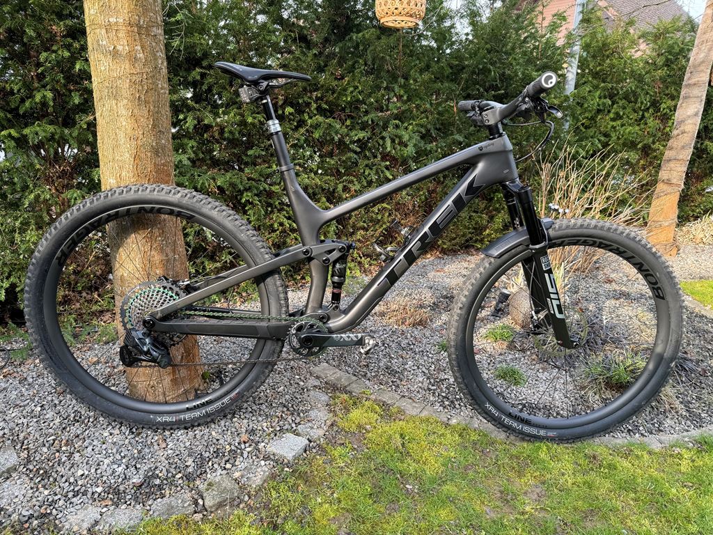 - SCHNELL & ELEGANT: DAS TREK TOP FUEL 9.9 AXS LÄSST KEINE WÜNSCHE OFFEN. DAS BIKE EIGNET SICH GLEICHERMASSEN FÜR ALPINE MARATHONS WIE FÜR LANGE TOUREN MIT VIELEN HÖHENMETERN. Neuwertiges 2x gefahrenes Trek Top Fuel 9.9 XX1 Project One Gr. XL SPEZIFIKATIONEN Preis CHF13799.00 Zustand: Neuwertig ca. 60km gefahren Grösse XL Material: bike-komplett carbon Federgabel : RockShox SID Ultimate, 120 mm Dämpfer: RockShox Deluxe Ultimate RCT, 185x50 mm Schaltung: Sram XX1 Eagle AXS Carbon Käfig Schalthebel: Sram Eagle AXS Kurbel: Sram XX1 Eagle, DUB, 30T, 175 mm carbon Bremsen Sram G2 Ultimate carbon Griffe Laufräder Bontrager Line Pro 30, Carbon Reifen Bontrager XR4 Team Issue Lenker Bontrager RSL Lenker-Vorbau-Einheit carbon Vorbau integriert carbon Stütze RockShox Reverb AXS Sattel Bontrager Arvada, Austenitstreben
