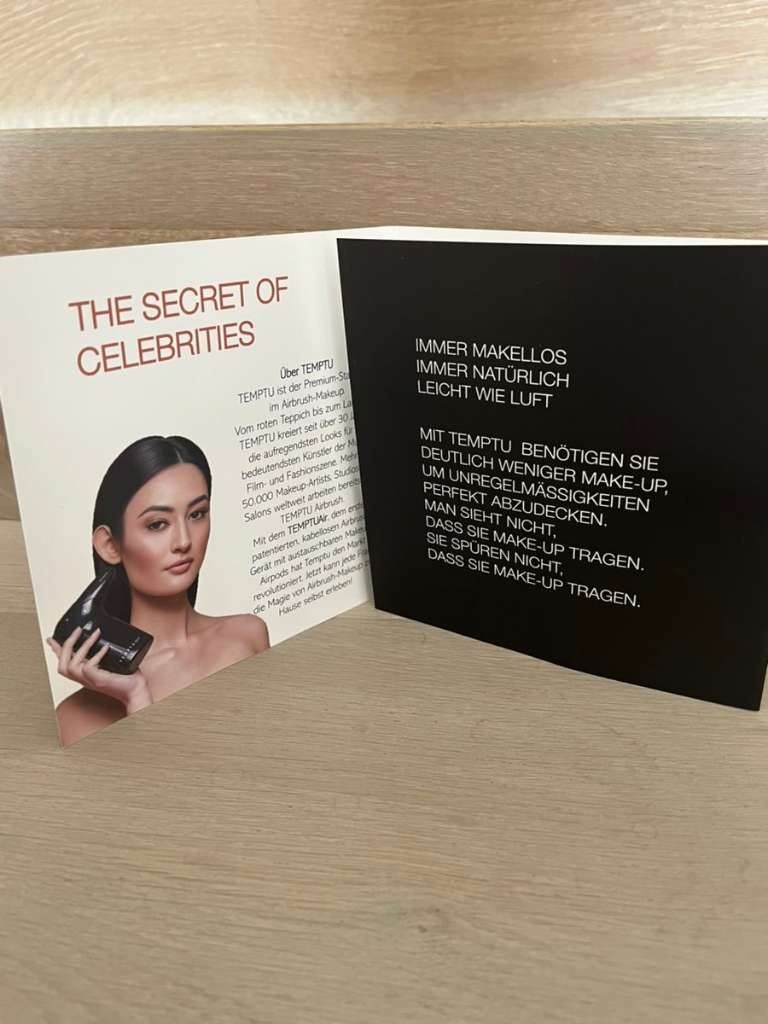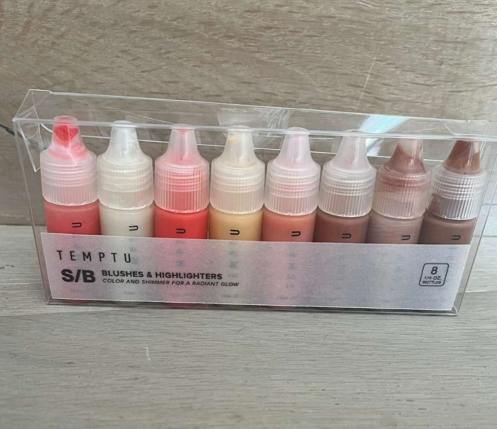 - Vollfunktionsfähiger Temptu Air, inkl. 2 Airpods, inkl. 12 Makeup Foundations ( teilweise benutzt manche noch voll! untereinander mischbar!) 8 Highlighter Farben, Temptu Spezialreiniger, Ladekabel.