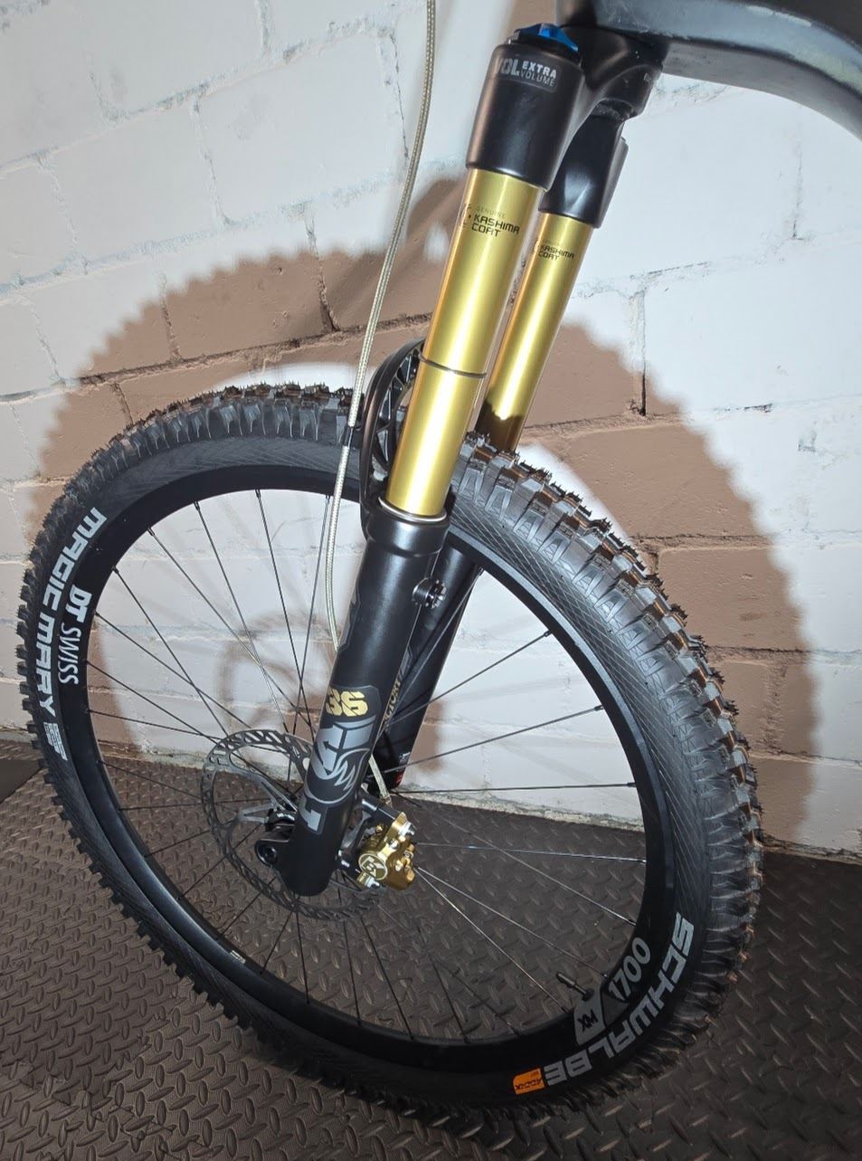- Neuwertiges Bike *Custom* Aufbau Custom Hinterrad mit Bontrager Rapid Drive 108 Nabe DT-Swiss H1700er Felge Neue Fox 36er Factory Federgabel 160mm Neuer Fox Float X Factory Dämpfer 150mm Neue GX Kurbelgarnitur, 32er Kettenblatt Neue GX Kassette 11-50z Neue XX1 Gold Kette Neue KS LEV Ci Sattelstütze 150mm drop Sram X01 Schaltwerk Braking INCAS 2.0 Bremsanlage Neue Trickstuff Dächle UL Bremsscheiben vo+hi Neue Reifen vo+hi Neue Lenkergriffe Originales Hinterrad inkl. + Zweiter Reifensatz
