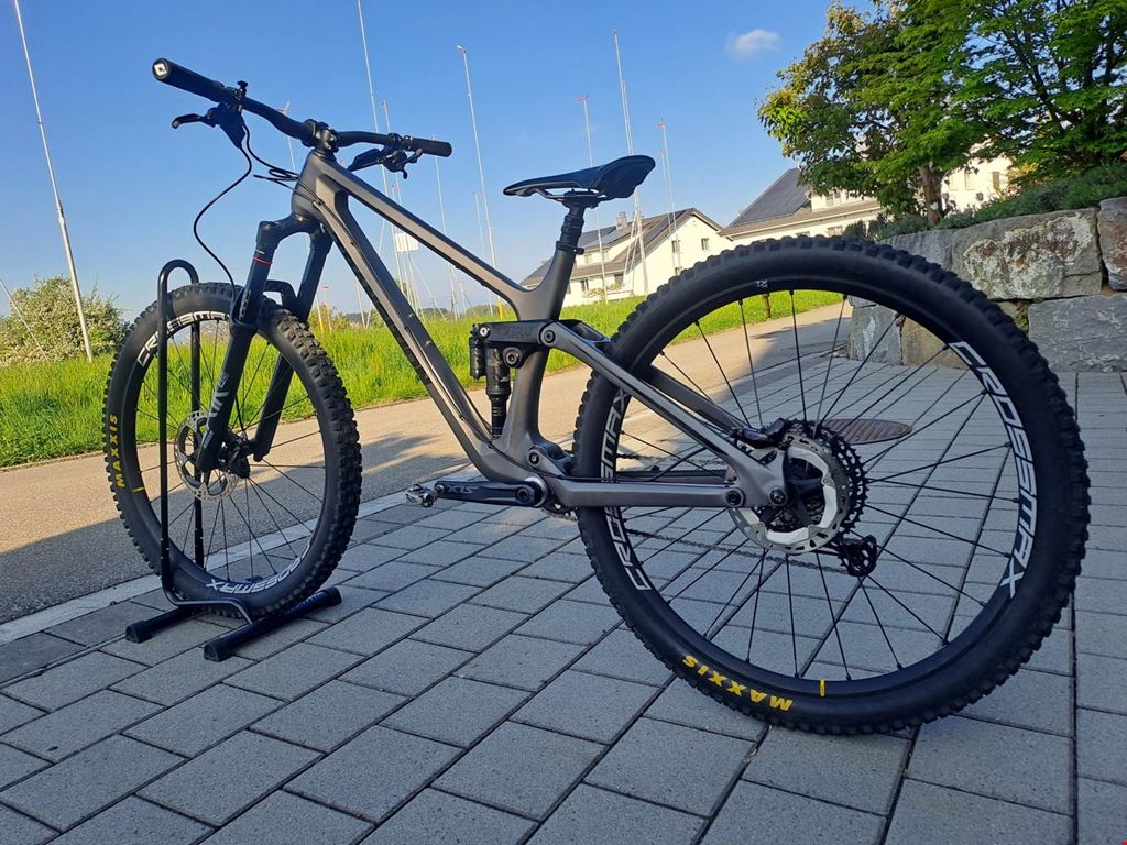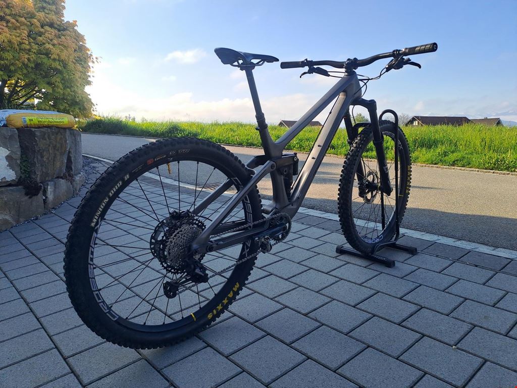 - Ich verkaufe mein 29 Zoll Vollcarbon Trail- und Enduro Fully von Transition Bikes Transition Sentinel von 2022 Highlights: 29" Vollcarbon Rahmen, Rockshock Lyrik Ultimate Federgabel und Super Deluxe Ultimate Dämpfer, neue Shimano XT 12-fach Schaltgruppe, Sram Code RSC 4 Kolbenbremsen, 29" Mavic Crossmax XL Laufräder Das Bike befindet sich in einem sehr guten Zustand und kommt frisch ab Service inkl. Gabel und Dämpferservice, alles funktioniert einwandfrei. Rahmengrösse L, ideal für eine Körpergrösse von 173 cm bis 186 cm Das Sentinel ist der Allrounder aus dem Sortiment von Transition Bikes. Es schafft den Spagat zwischen Uphill Effizienz und Downhill Performance. Die Kombination aus 160 Millimeter Federweg an der Front und 150 Millimeter am Heck sorgt in Verbindung mit der progressiven Kinematik für ein schluckfreudiges, traktionsstarkes Fahrwerk. Es hält das Bike auch bei hoher Geschwindigkeit und harten Schlägen auf dem Trail gut kontrollierbar. Das Bike im Detail: Vollcarbon Rahmen (Hauptrahmen und Hinterbau aus Carbon) mit Cascade Components Linkage Rockshox Lyrik Ultimate Federgabel mit 160 mm Federweg Rockshox Super Deluxe Ultimate Dämpfer mit 150 mm Federweg neue Shimano XT 12-fach Antriebsgruppe mit SLX Kurbel und 10-51 XT Kassette, fabrikneu und ungefahren ist das XT-Schaltwerk, der XT-Schalthebel und die XT-Kette, 10 mal gefahren ist das Kettenblatt, die XT-Kassette und die SLX Kurbel. volle Bremspower mit Sram Code RSC 4 Kolben Bremsen mit 203 mm und 180 mm Bremsscheiben 29 Zoll Mavic Crossmax XL Laufräder mit 30 mm Innenbreite Canyon G5 Carbon Lenker 780 mm breit und 30 mm Rise absenkbare RockShock Reverb Sattelstütze, mit 150 mm Hub Syncros Carbon Sattel Maxxis Pneus, tubeless verbaut XT-Klick Pedale